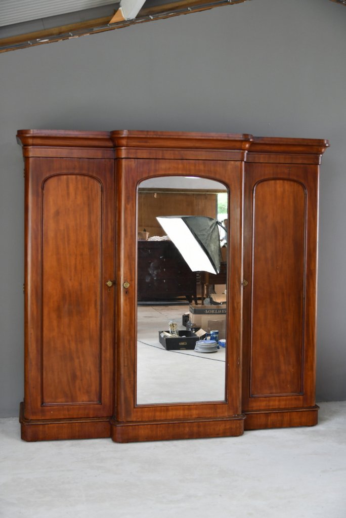 Antique Victorian Mahogany Triple Wardrobe (1 of 1)