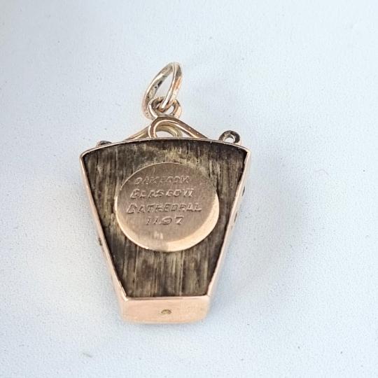 Antique Victorian Masonic Pendent, Glasgow Cathedral, Oak Wood & Gold