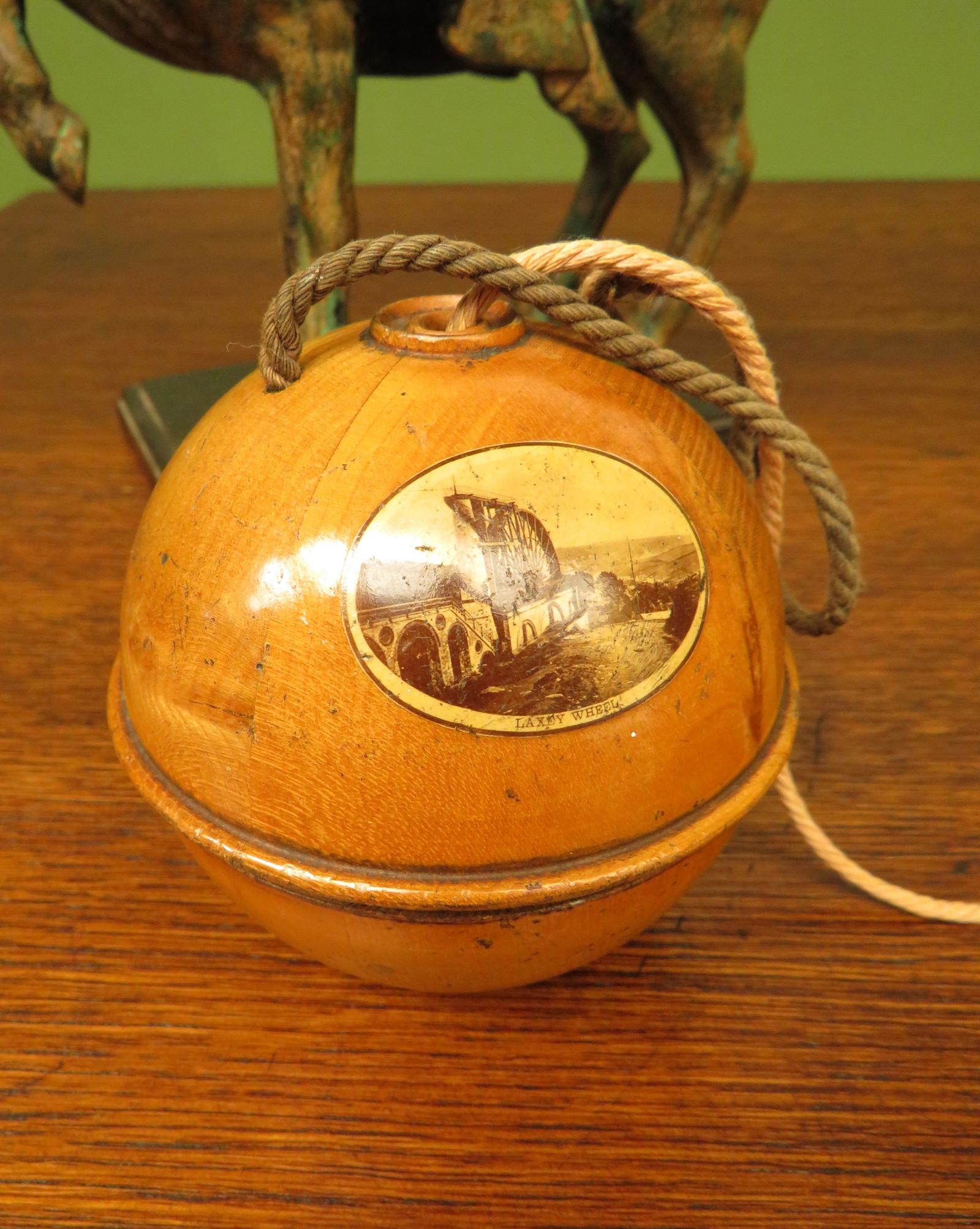 Antique Victorian Mauchline Ware String Holder, Laxey Wheel, Isle oF Man
