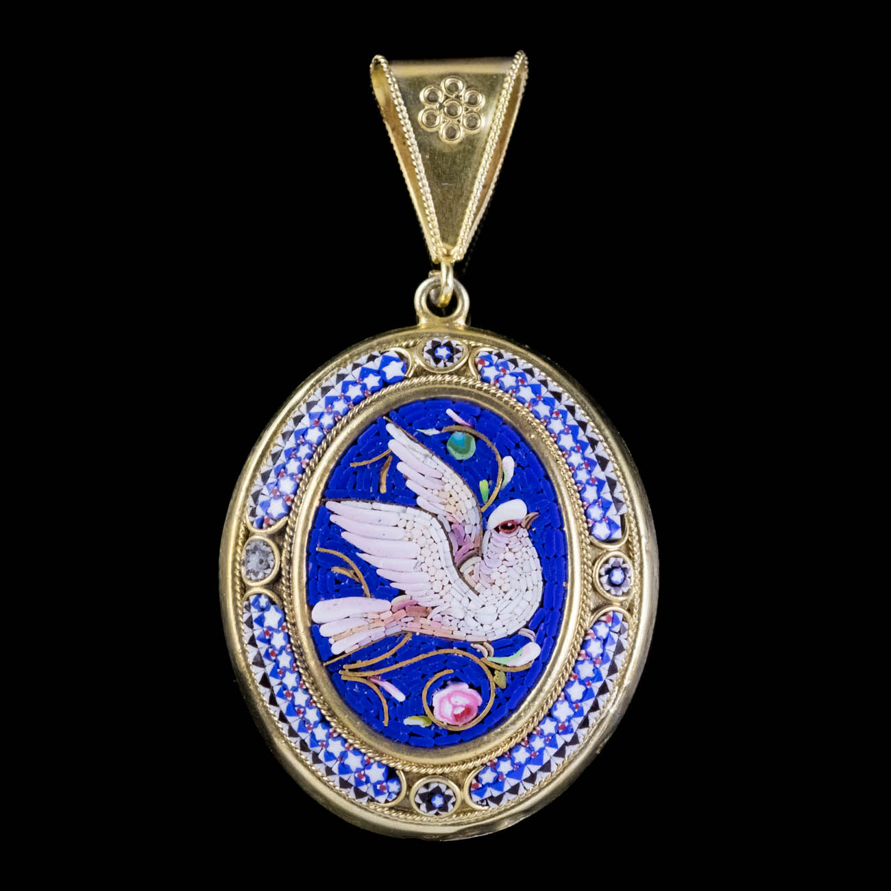 Antique Victorian Micro Mosaic Dove Locket 18ct Gold c.1860
