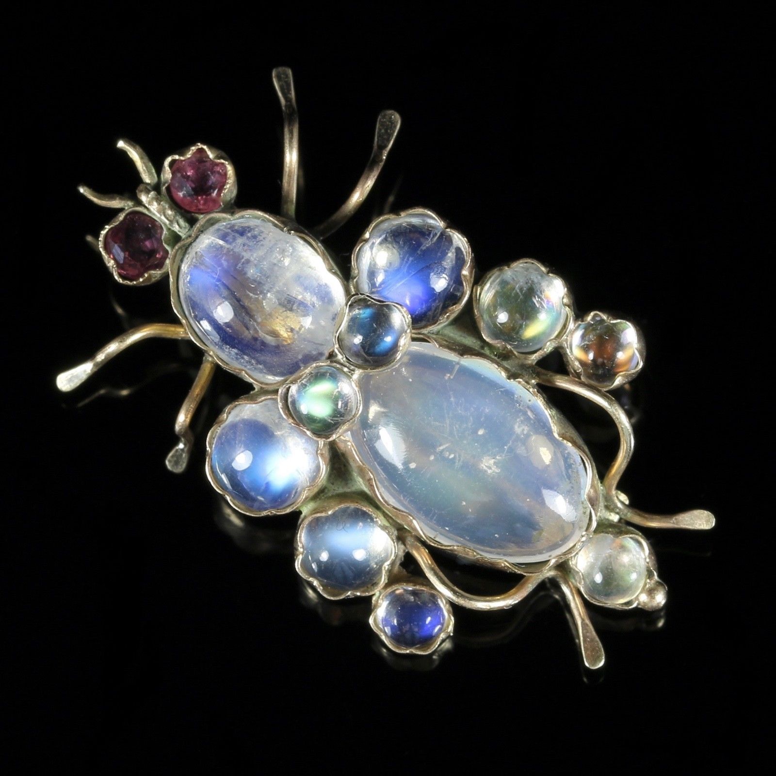 Antique Victorian Moonstone Ruby Bug Brooch 9ct Gold