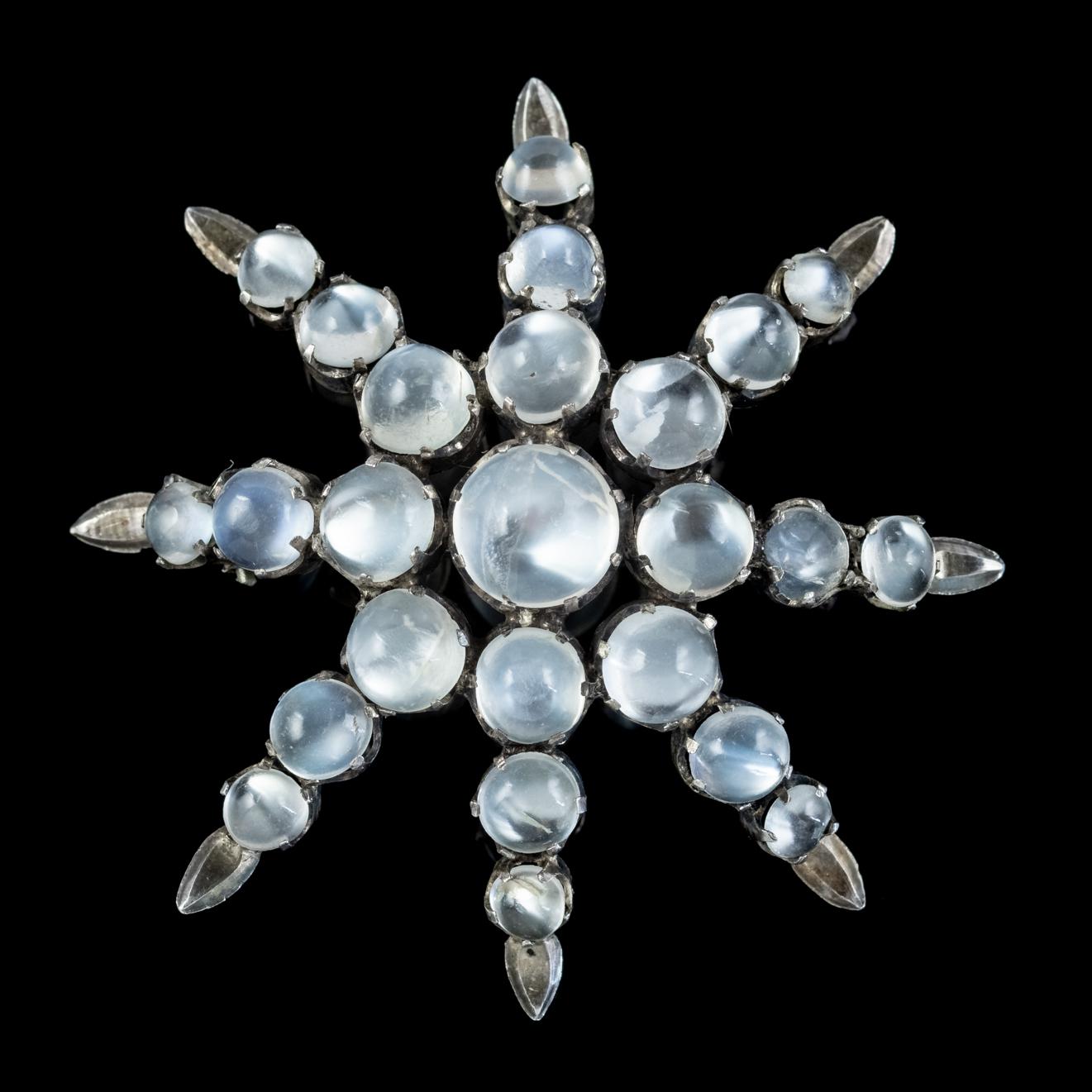 Antique Victorian Moonstone Star Brooch Silver c.1900
