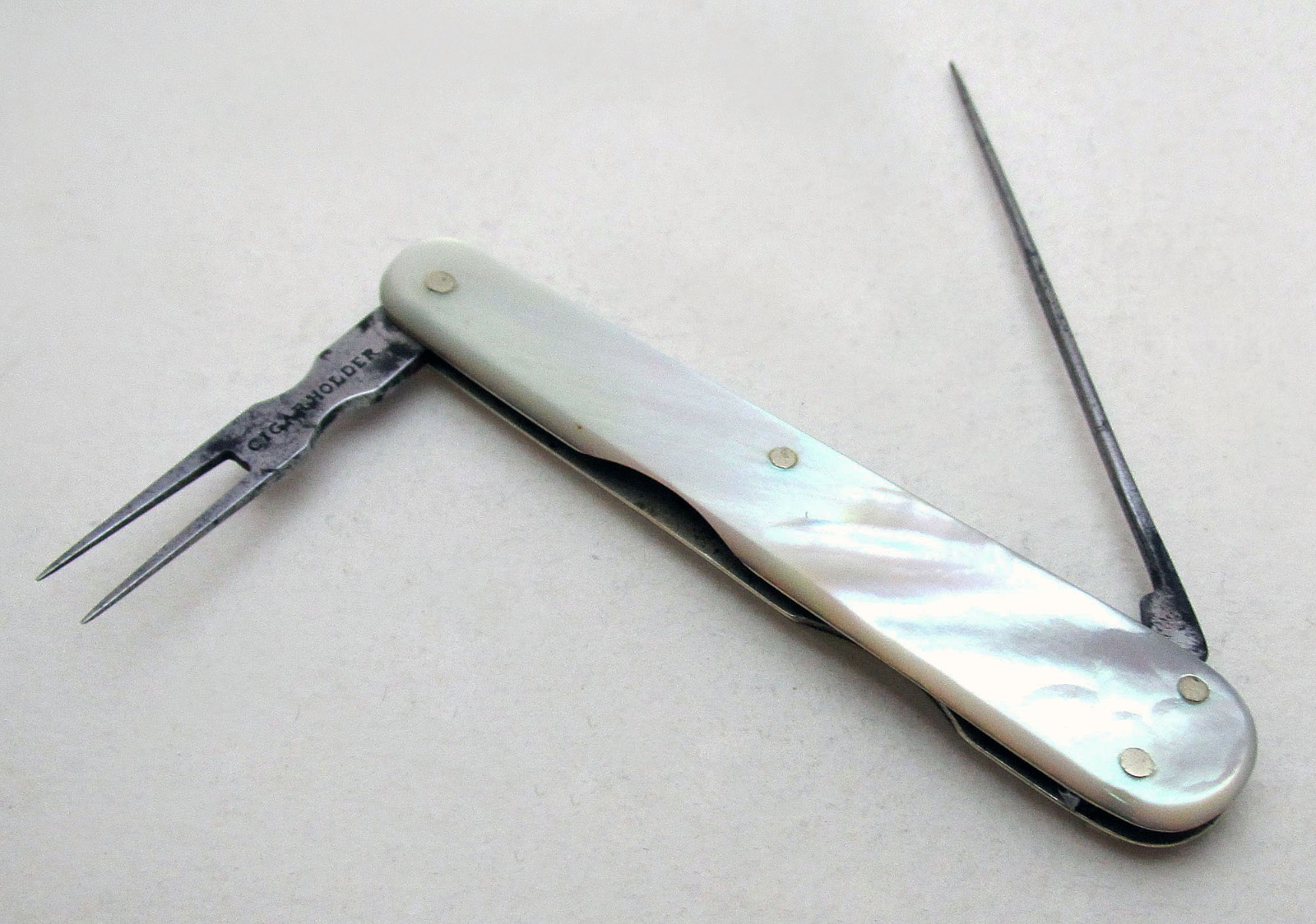 Antique Victorian Mother of Pearl Smokers Pocket Folding Cigar Multi Tool Fork Holder Spike (Pen Fruit Knife Penknife) J.Nowill & Sons