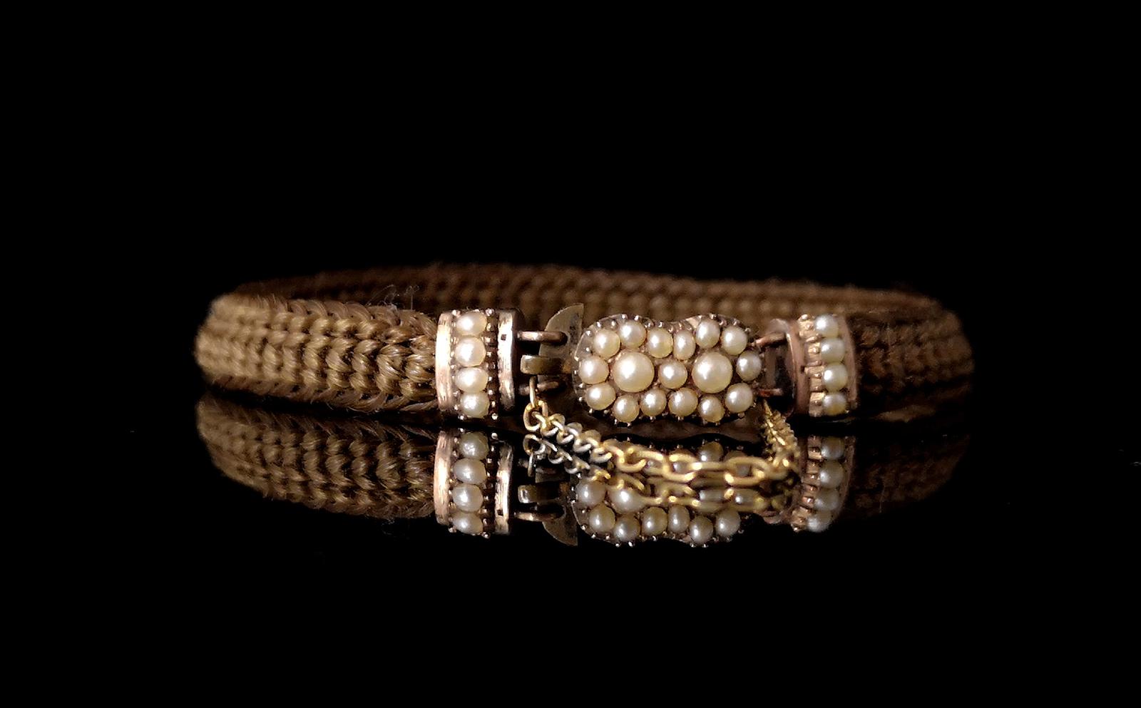 Antique Victorian Mourning Bracelet, Hairwork & Seed Pearl
