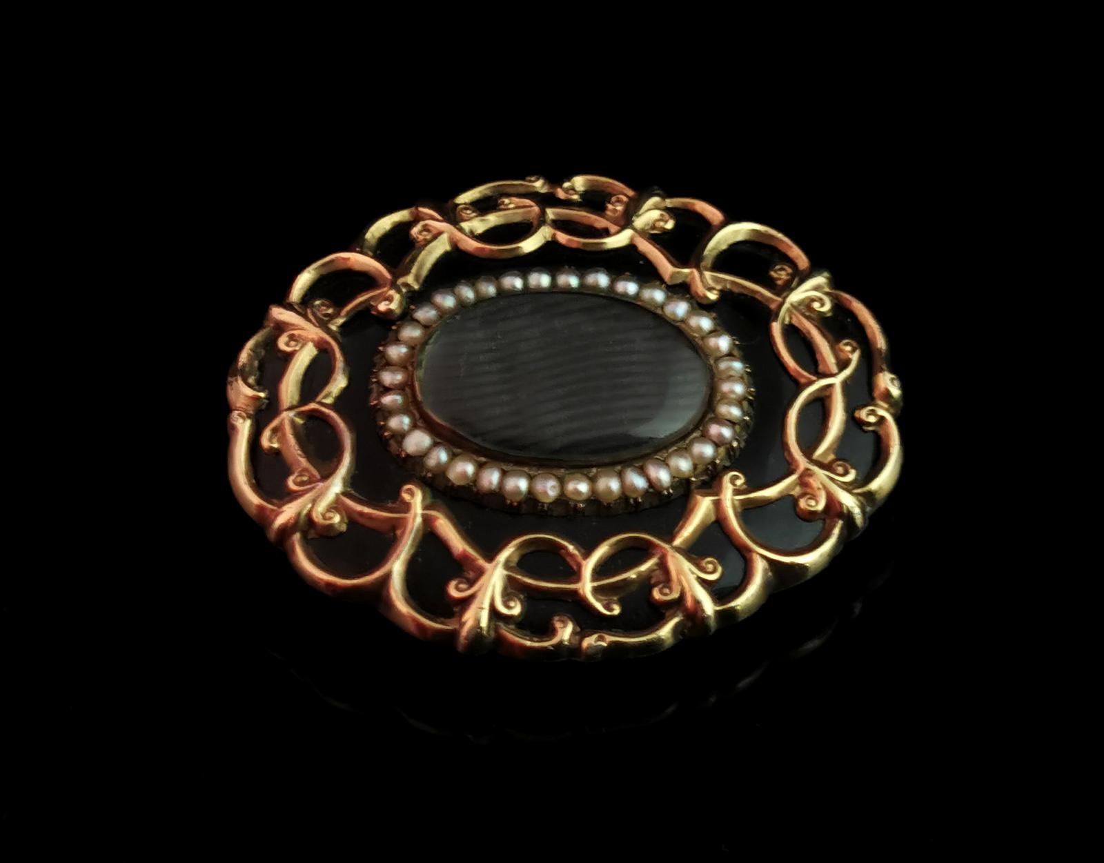 Antique Victorian Mourning Brooch, 9ct Gold Black Enamel