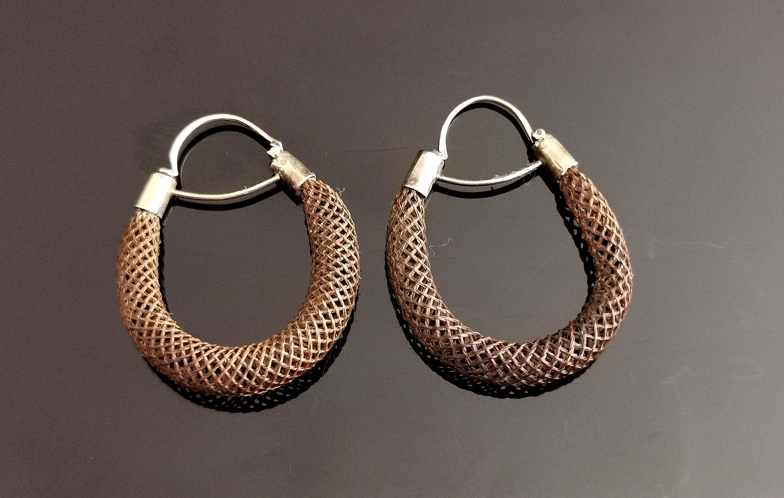 Antique Victorian Mourning Earrings, Hairwork & 9ct Gold