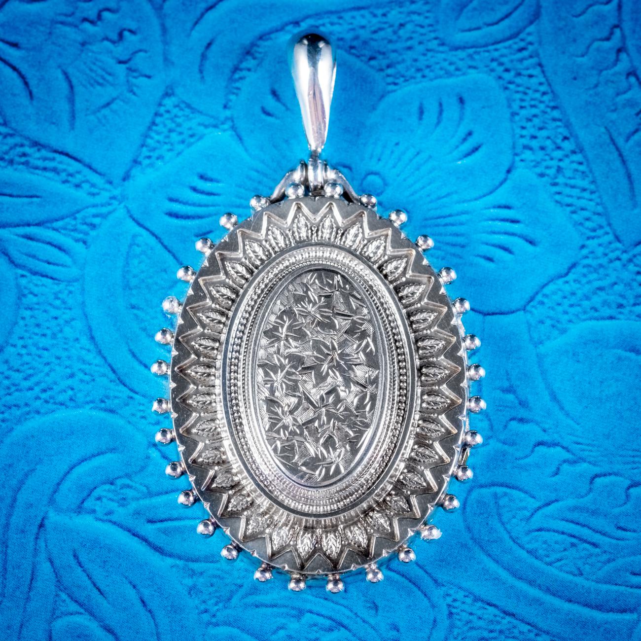Antique Victorian Mourning Ivy Locket Sterling Silver Dated 1864