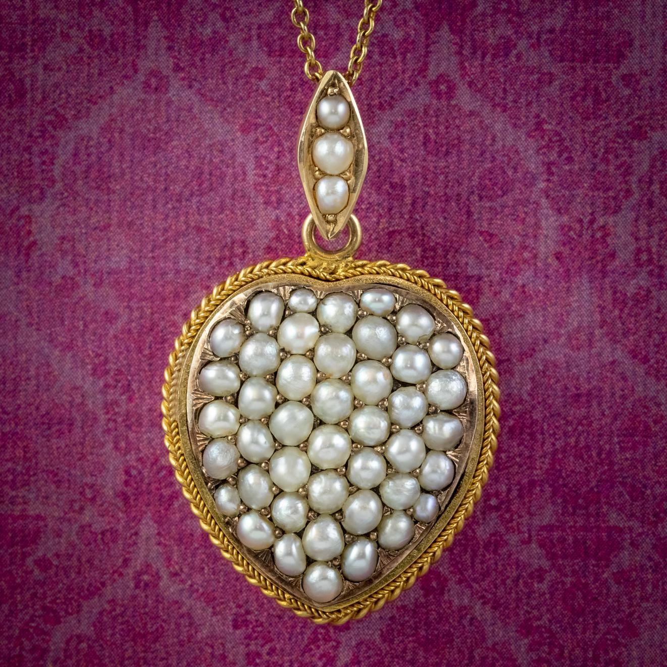 Antique Victorian Natural Pearl Heart Pendant Necklace 18ct Gold Circa 1880