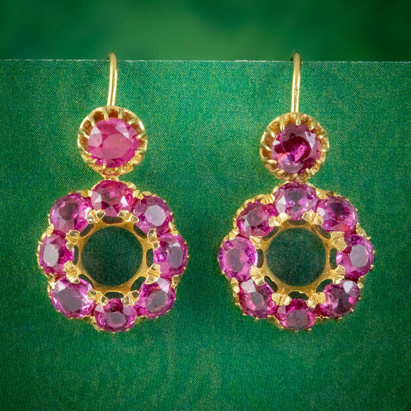 Antique Victorian Natural Ruby Pink Sapphire Earrings 18ct Gold c.1880 With Cert
