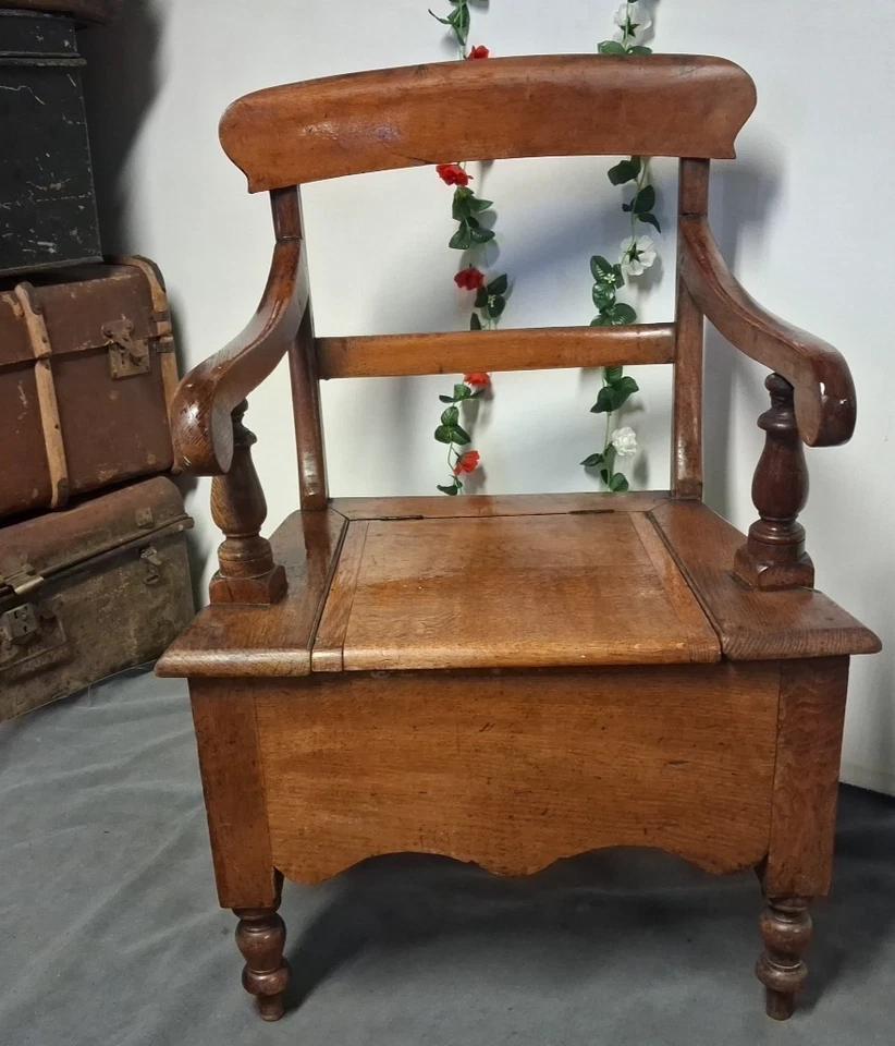 Antique Victorian Oak Commode Armchair with Wide Seating Area