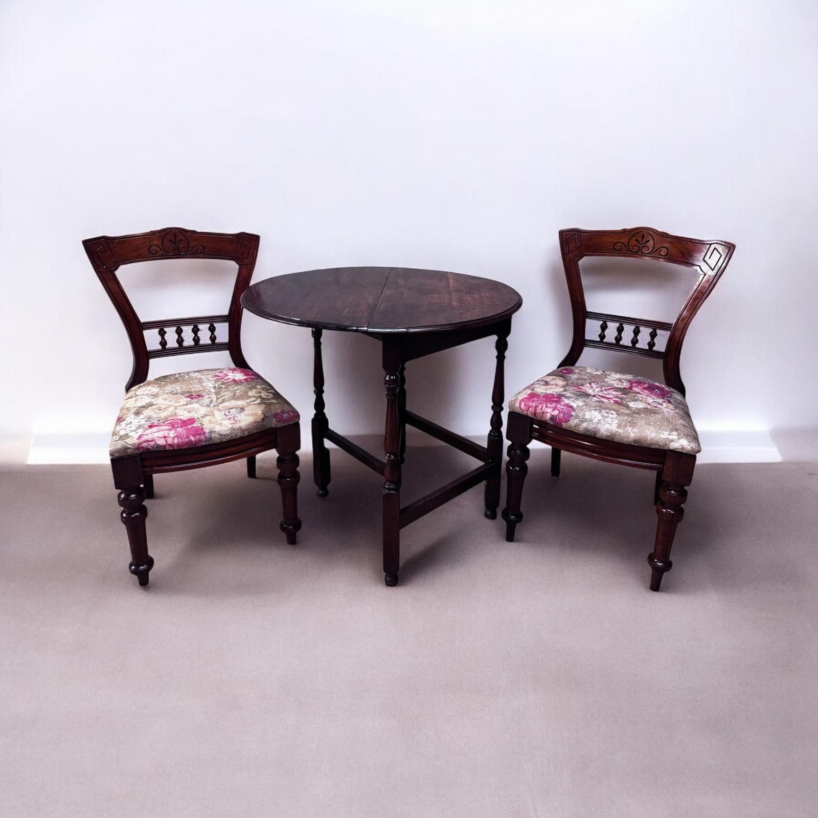 Antique Victorian Oak Dining Chairs / Set of 2 / Made in England 1870s