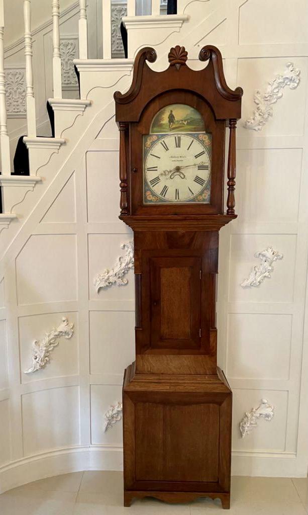 Antique Victorian Oak & Mahogany Painted Arched Dial Grandfather Clock  Signed Anthony Binks (1 of 14)