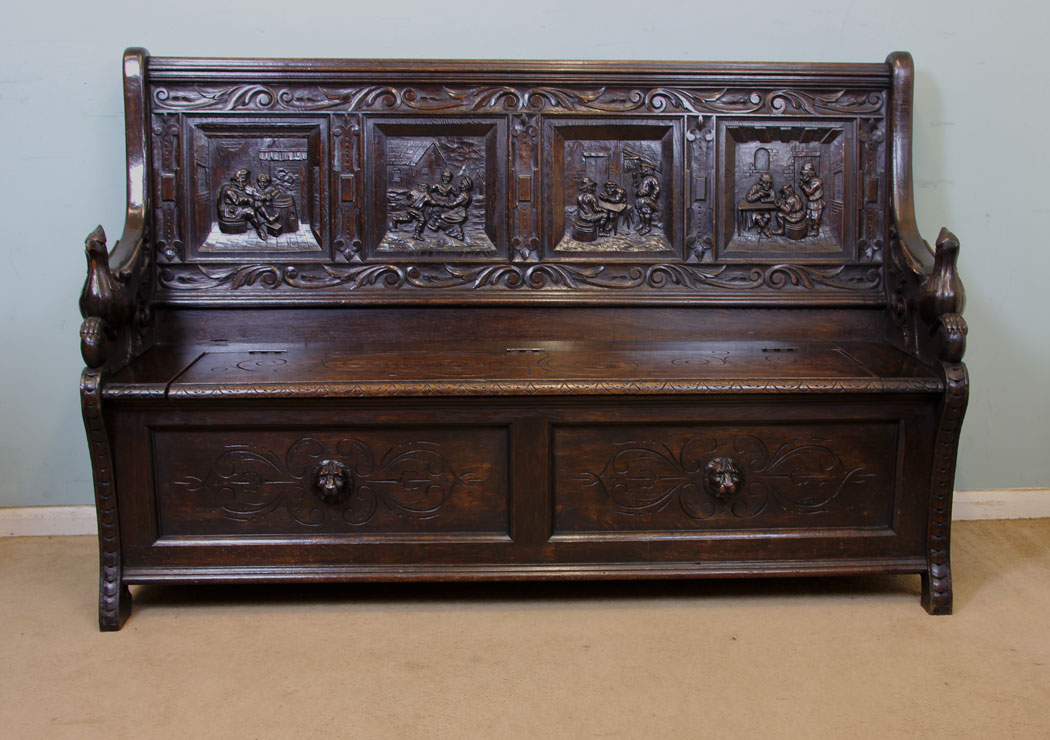 Antique Victorian Oak Settle / Monks Bench / Hall Seat (1 of 1)