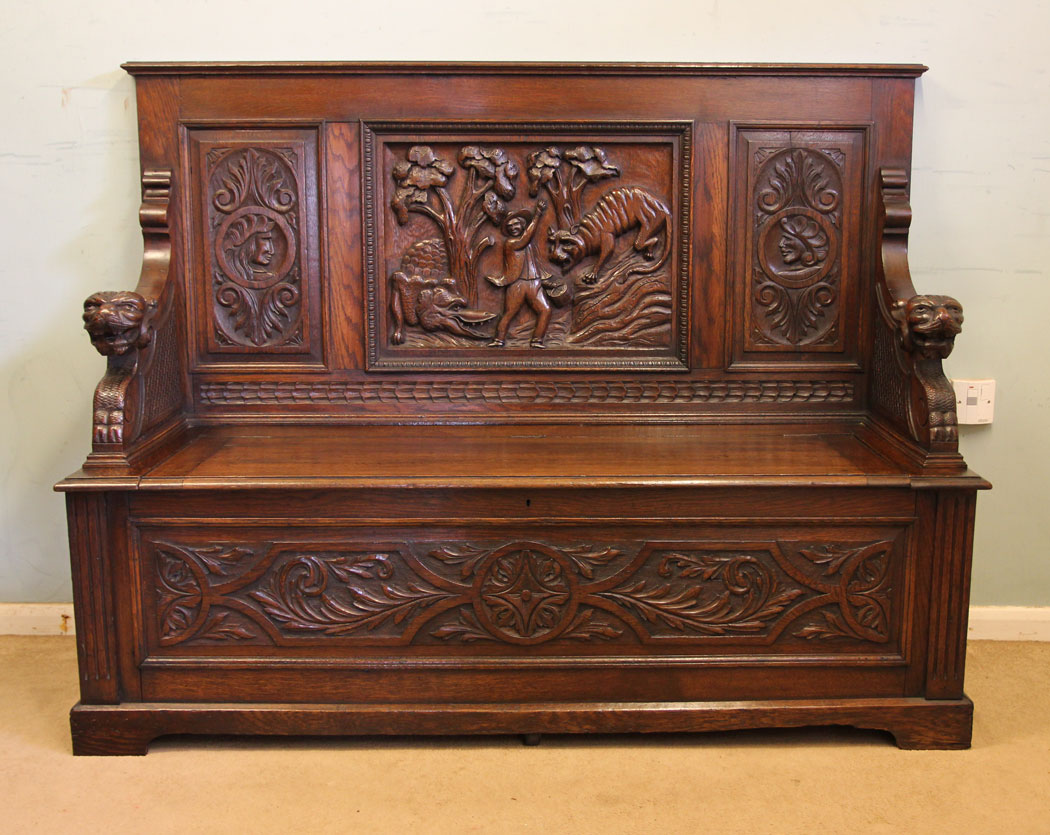 Antique Victorian Oak Settle Monks Bench Hall Seat