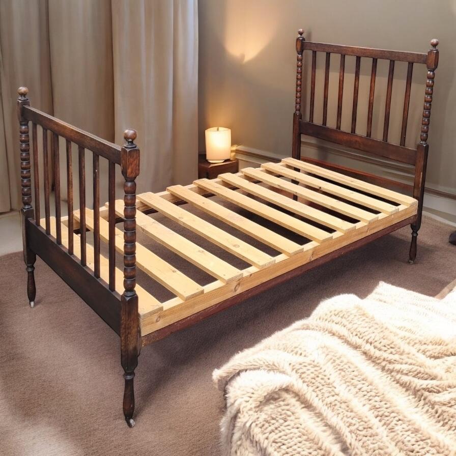 Antique Victorian Oak Single Bed / Turned Column Legs c.1840