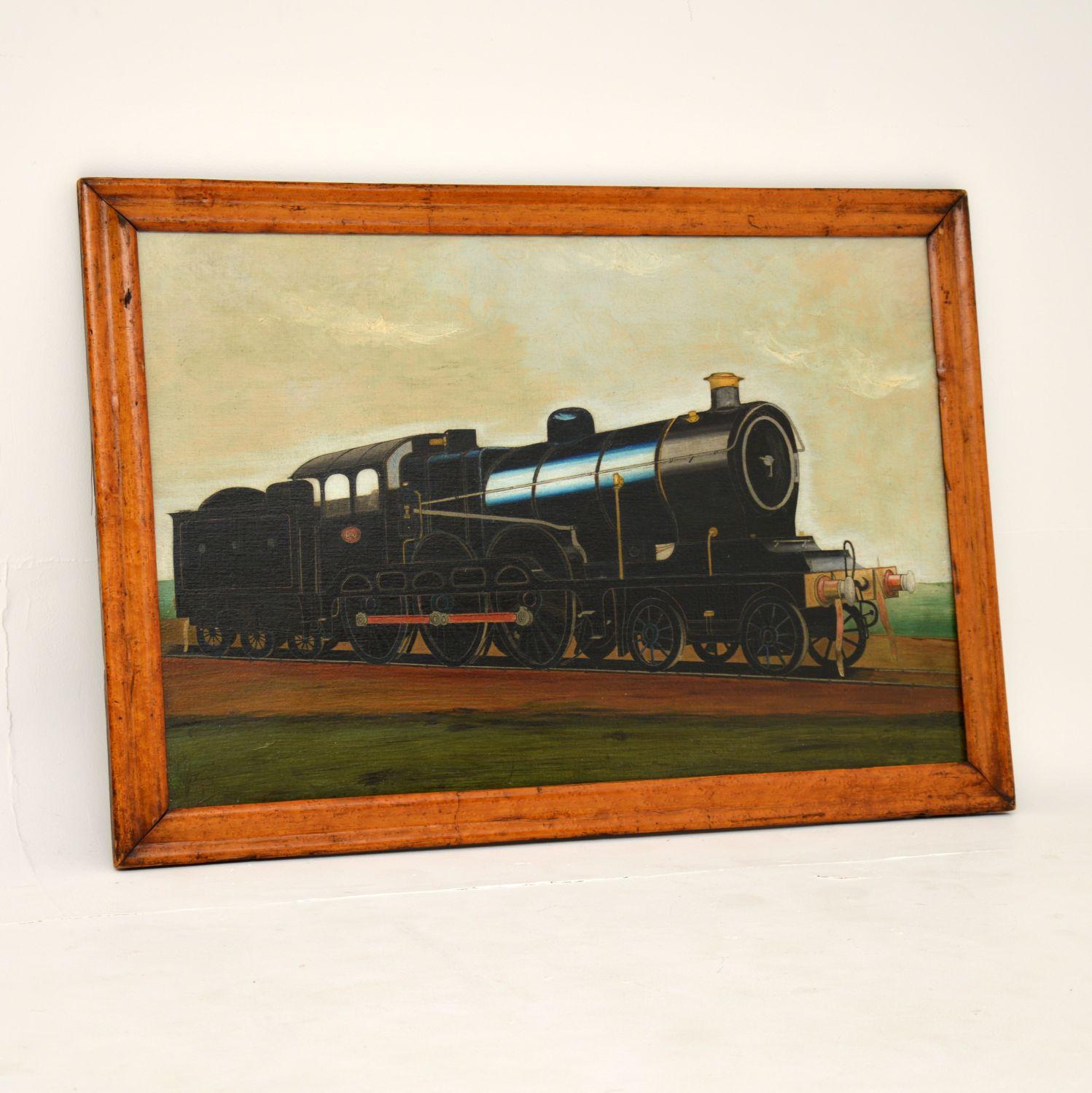 Antique Victorian Oil Painting of Steam Locomotive Train