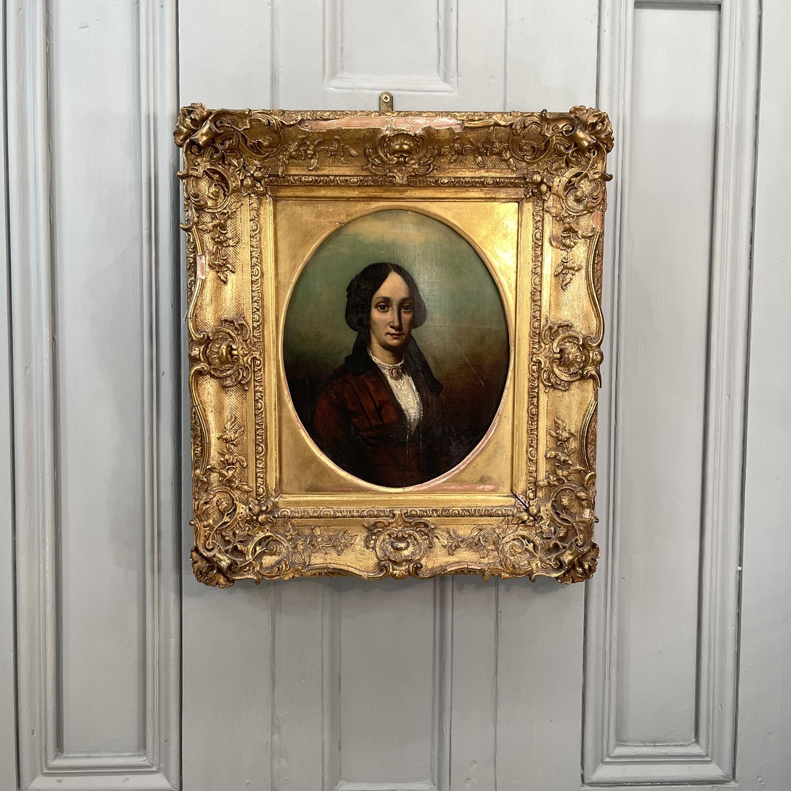 Antique Victorian Oil Painting Portrait of a Society Lady