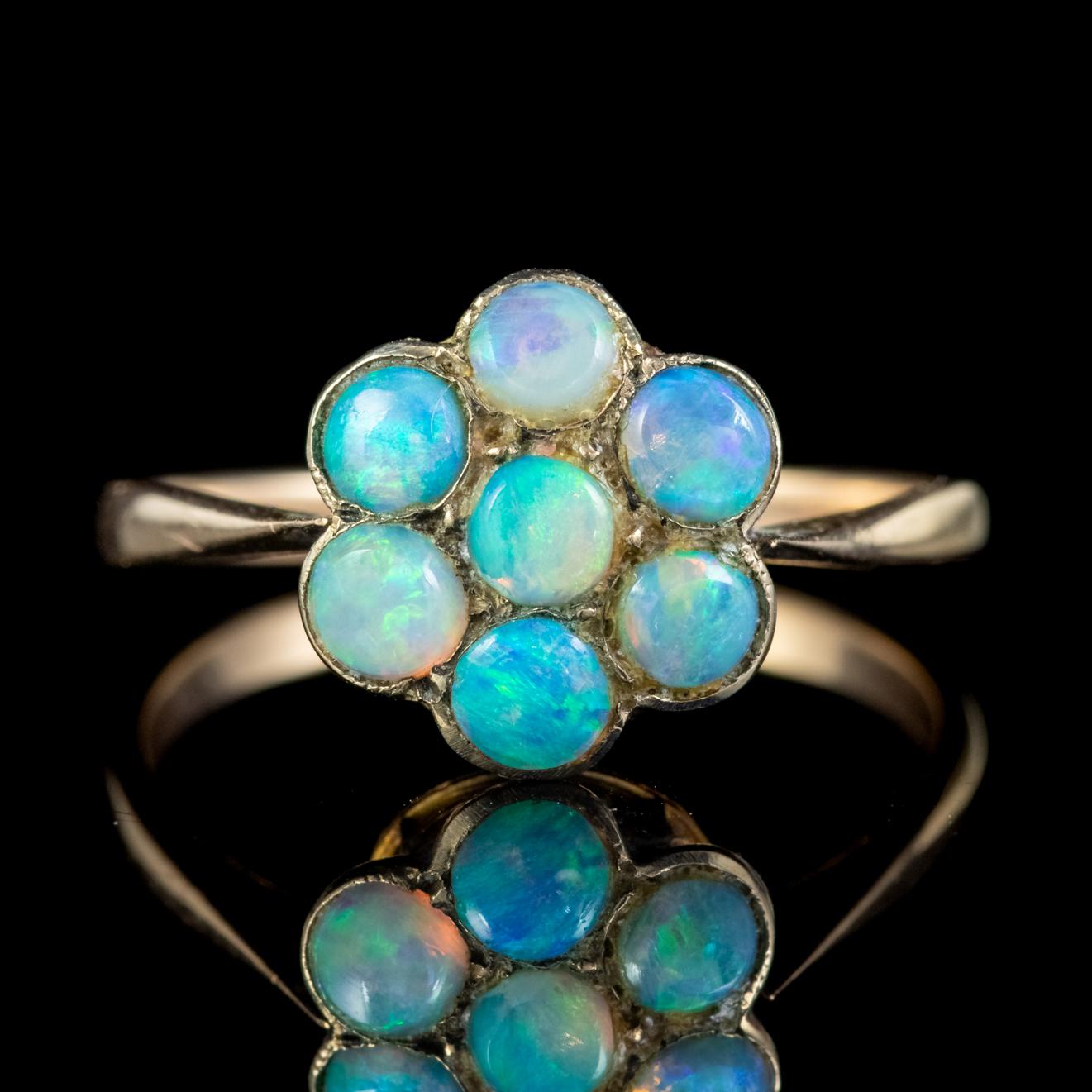 Antique Victorian Opal Cluster Flower Ring 9ct Gold c.1880