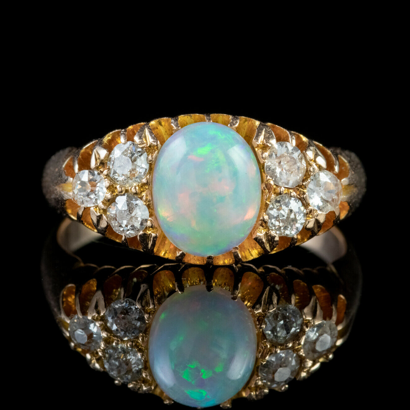 Antique Victorian Opal Diamond Ring 15ct Gold Dated 1897