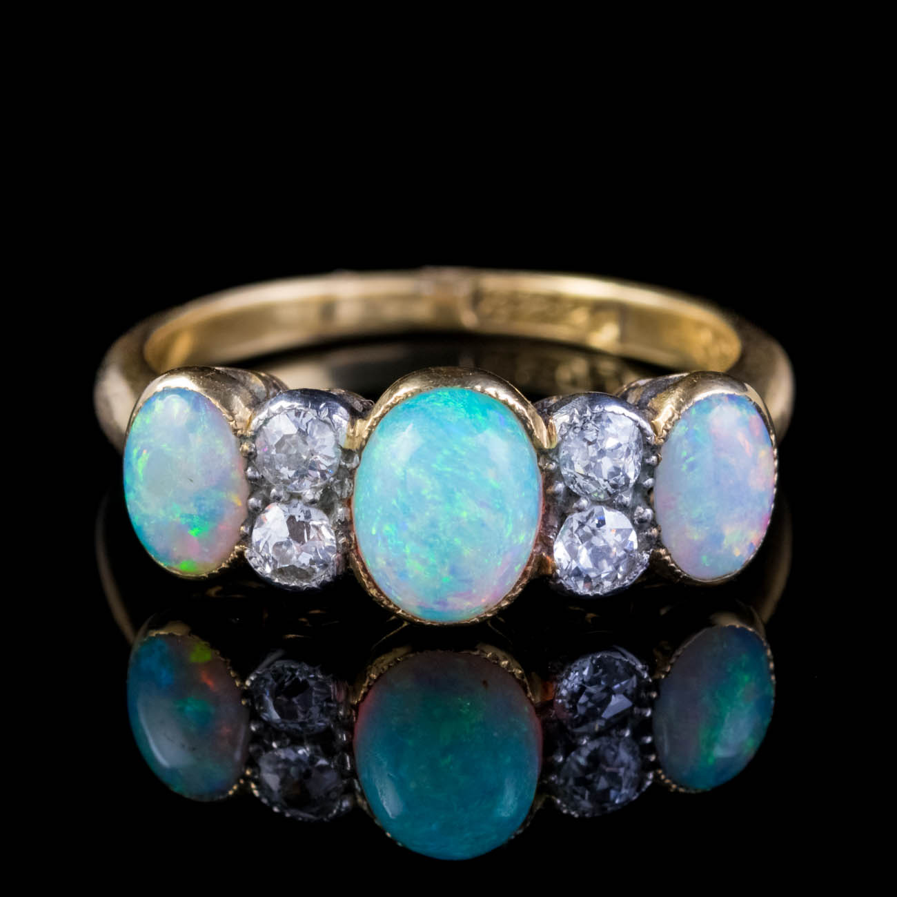 Antique Victorian Opal Diamond Ring 18ct Gold 1.75ct Opal c.1890