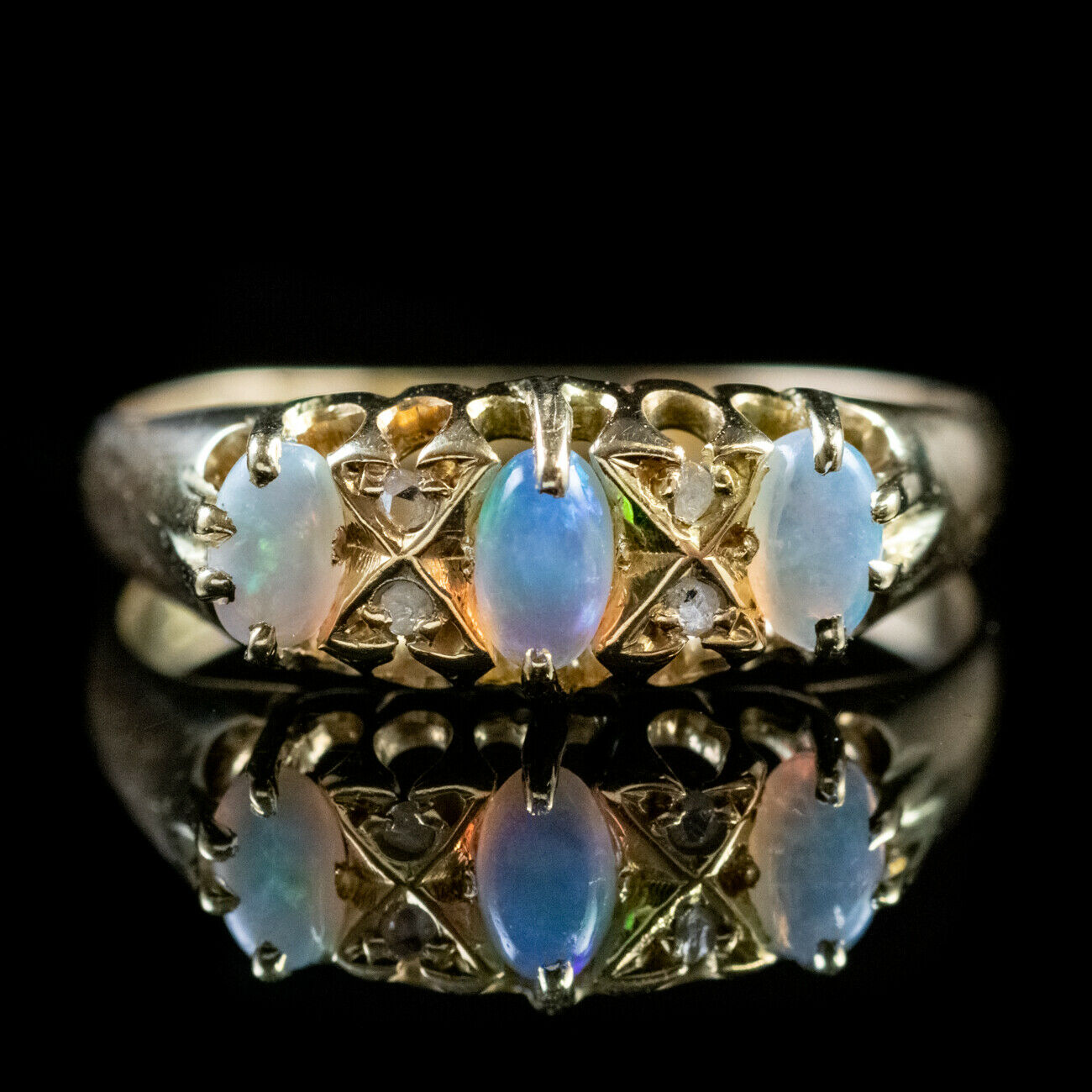Antique Victorian Opal Diamond Ring 18ct Gold c.1900