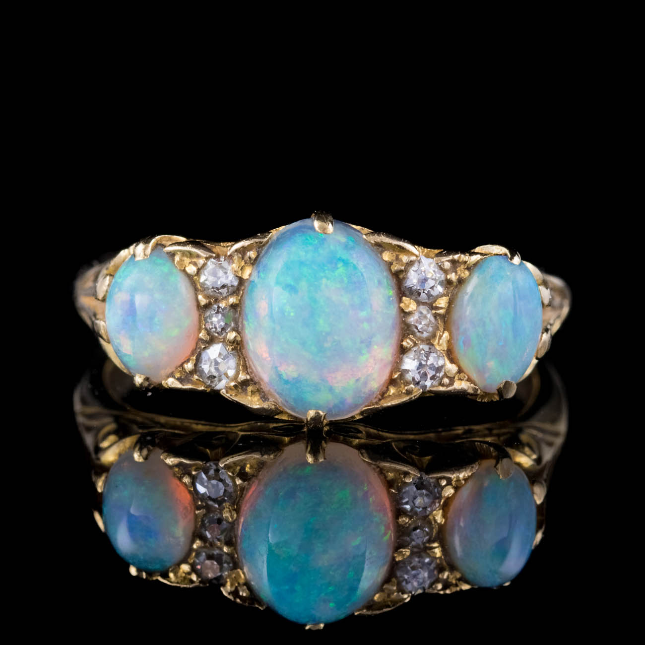 Antique Victorian Opal Diamond Ring 18ct Gold c.1900 Boxed