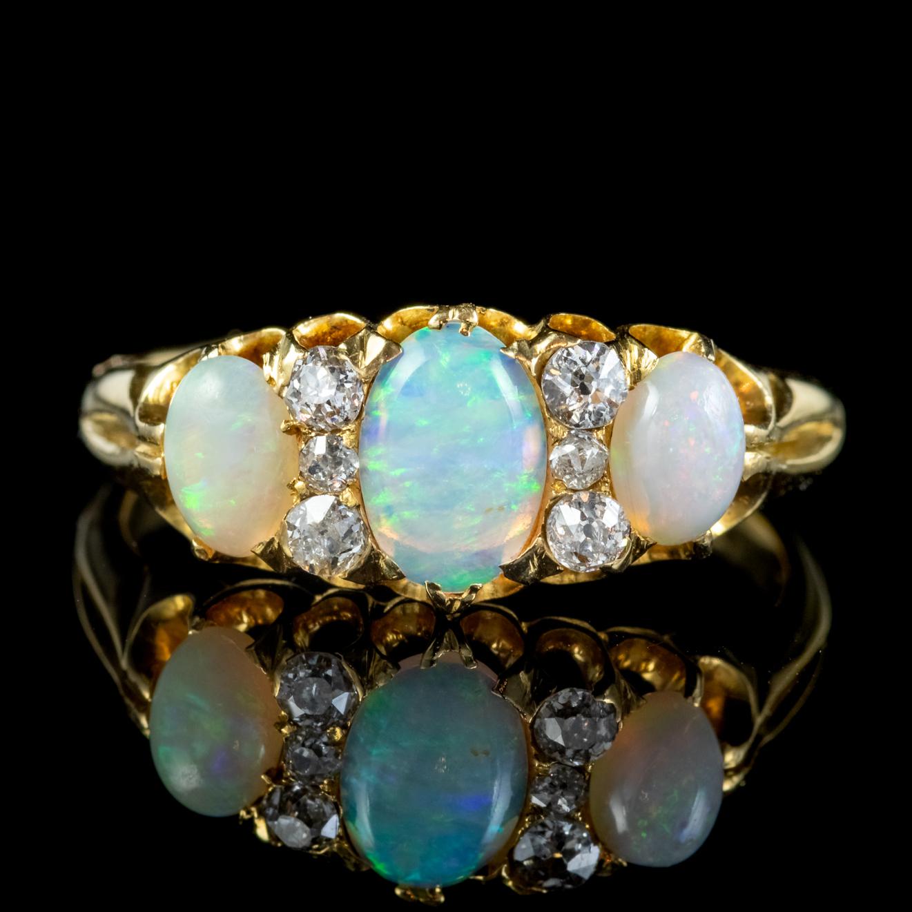 Antique Victorian Opal Diamond Trilogy Ring 18ct Gold c.1900