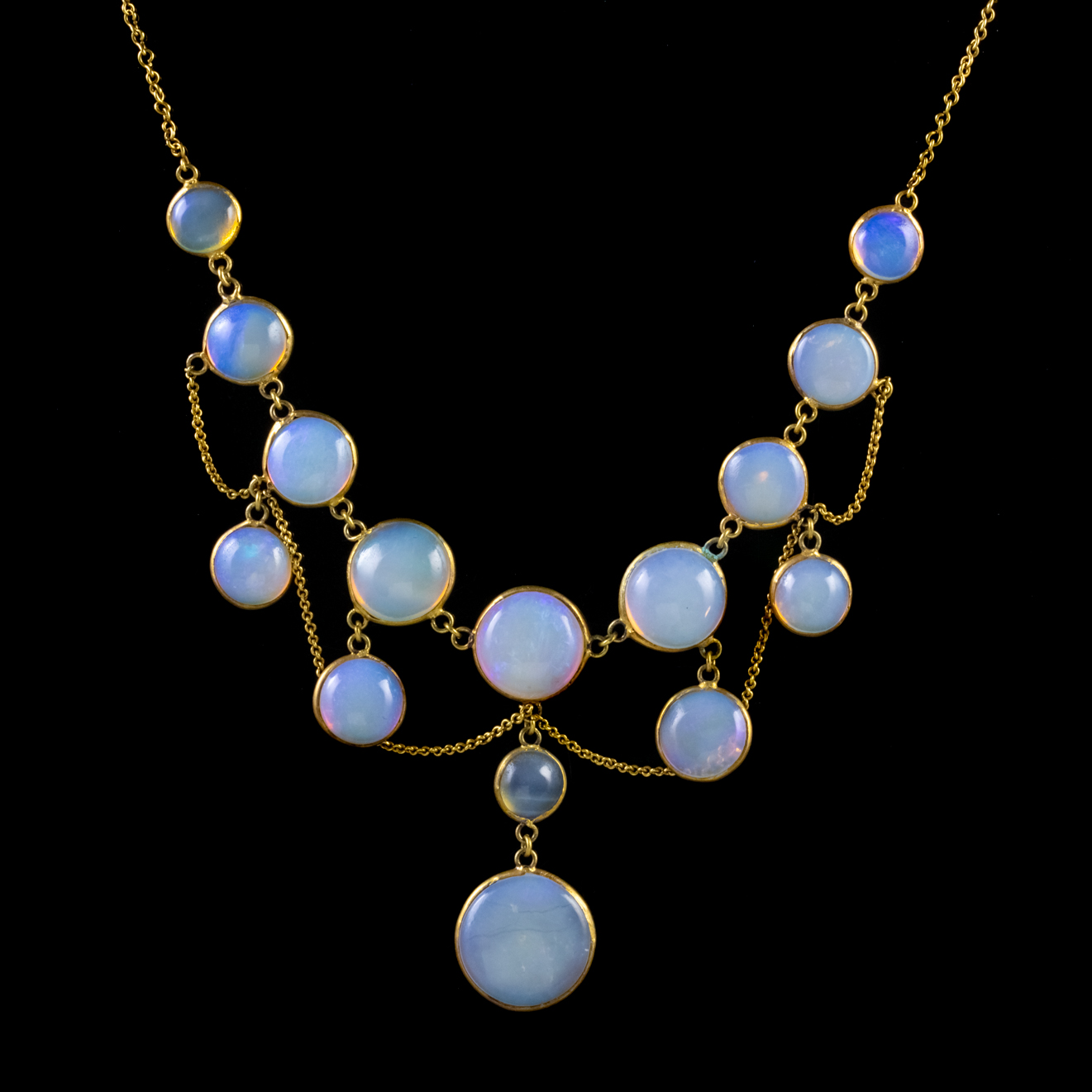Antique Victorian Opal Festoon 18ct Gold Necklace c.1900