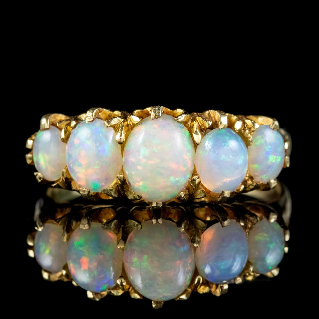 Antique Victorian Opal Five Stone Ring 18ct Gold 2.20ct Of Opal c.1900