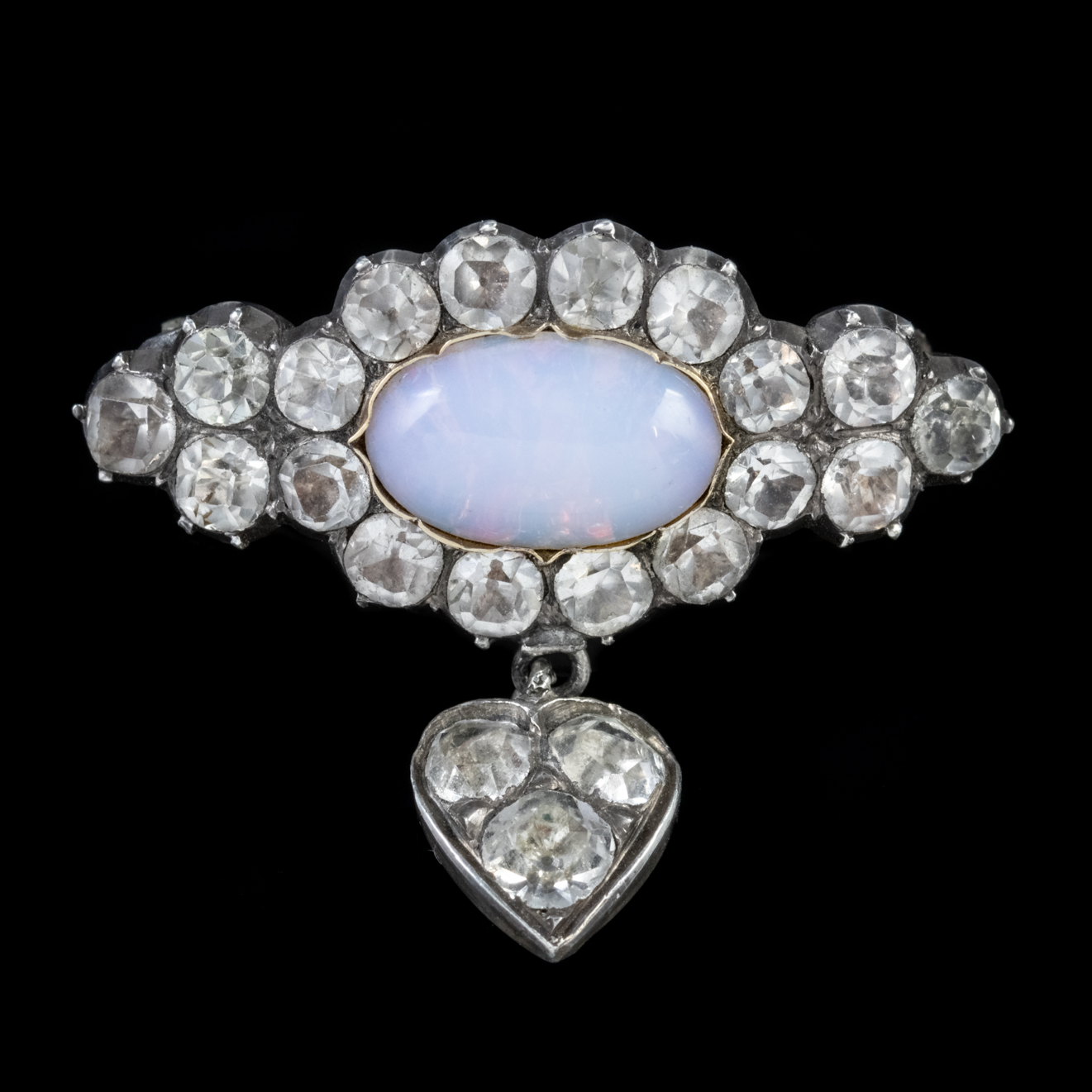 Antique Victorian Opaline Glass Brooch Silver c.1860