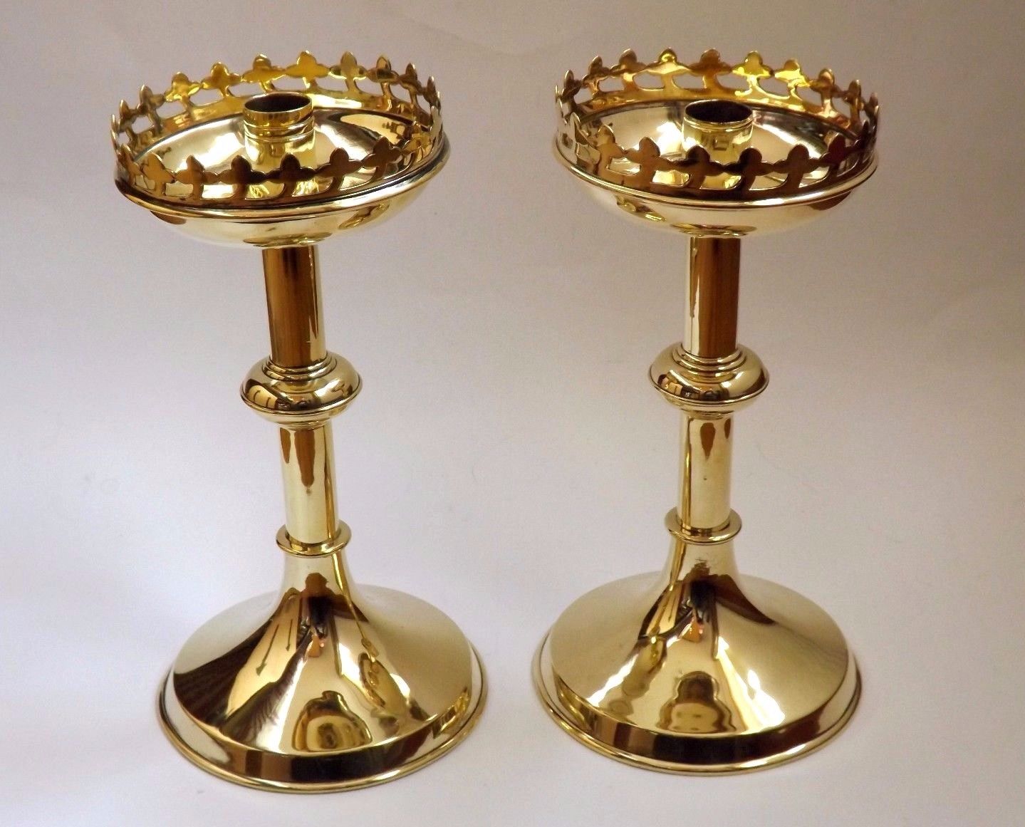 Antique Victorian Pair of Brass Gothic Church Candlesticks c.1880 (1 of 1)