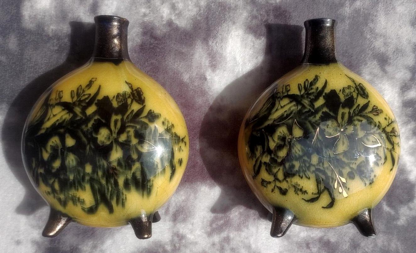 Antique Victorian Pair of Ceramic Iris Moon Flask Pottery Vases Doulton Burslem