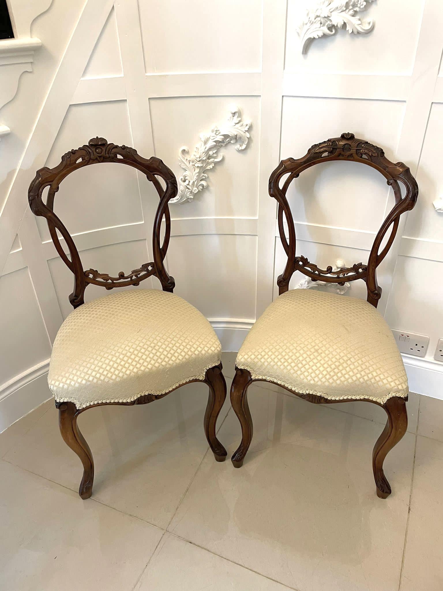 Antique Victorian Pair of Quality Carved Walnut Side Chairs