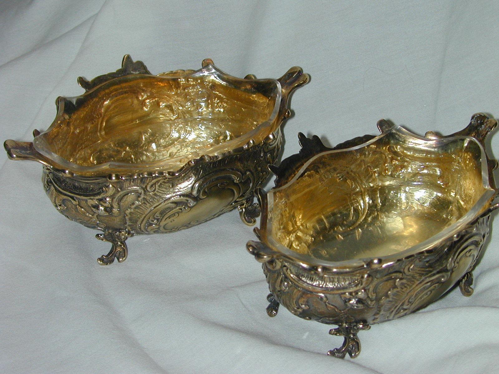 Antique Victorian Pair of Silver Gilt Bon Bon Dishes