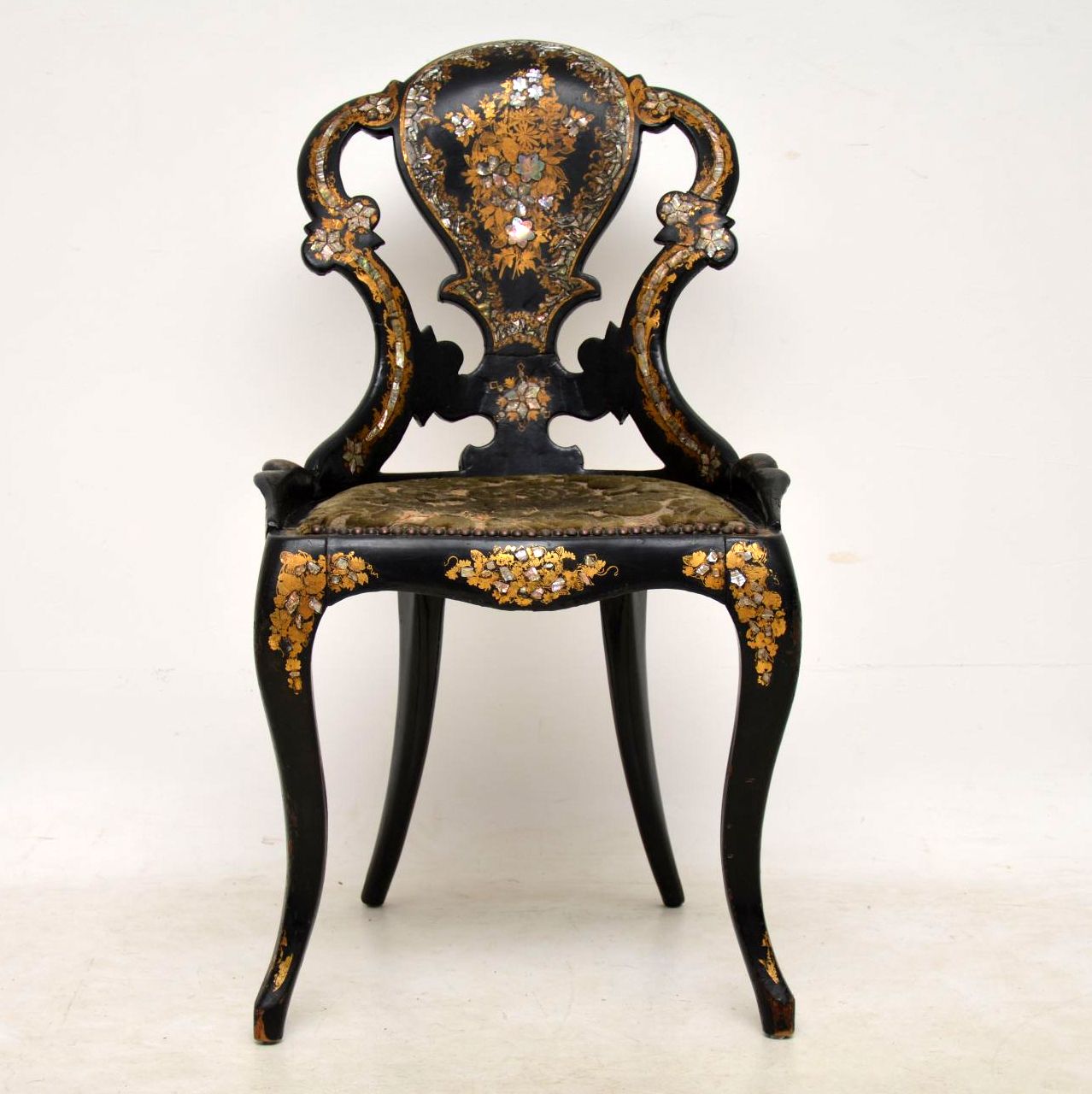 Antique Victorian Papier Mache Side Chair Inlaid with Mother of Pearl (1 of 1)