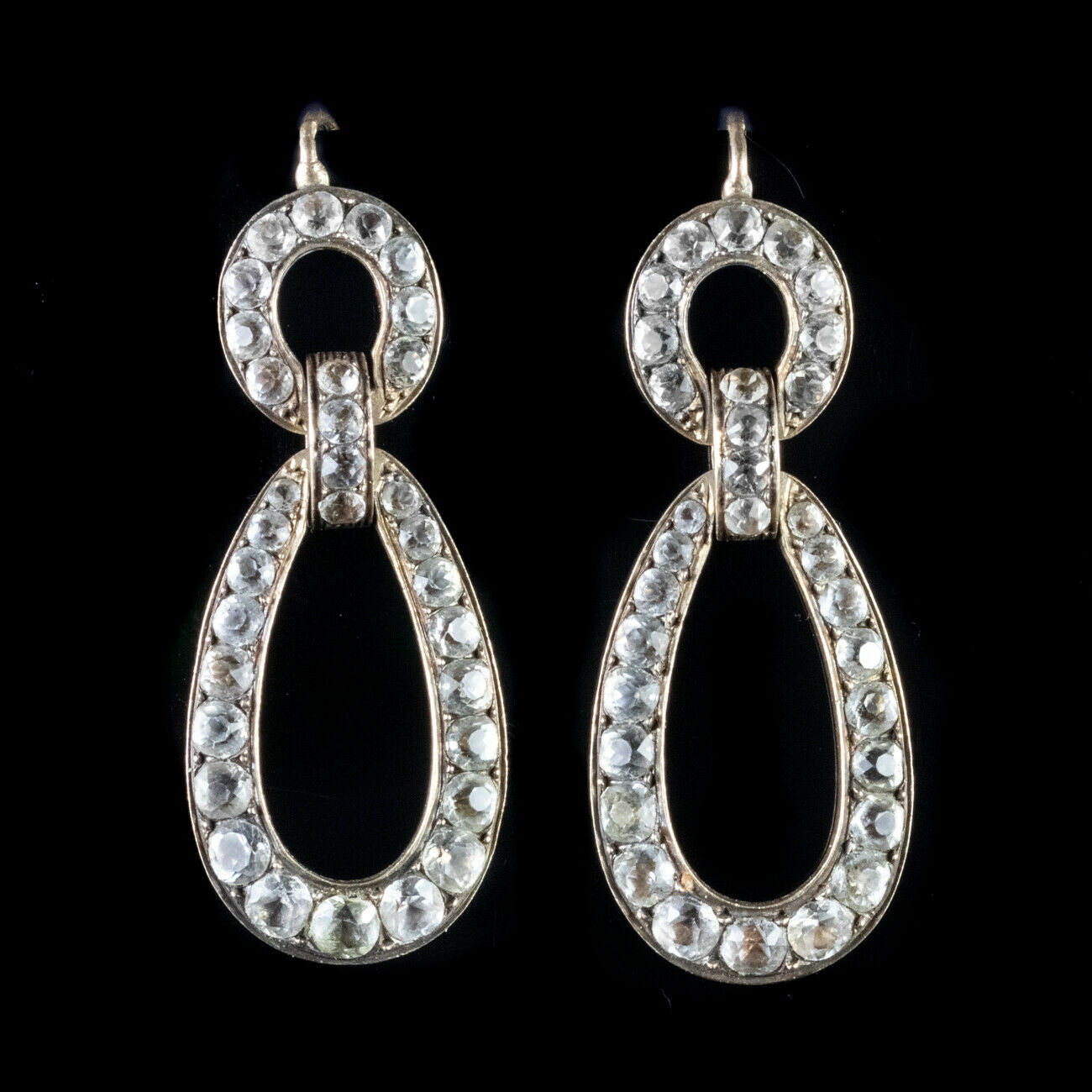 Antique Victorian Paste Drop Earrings French 18ct Gold Silver c.1840