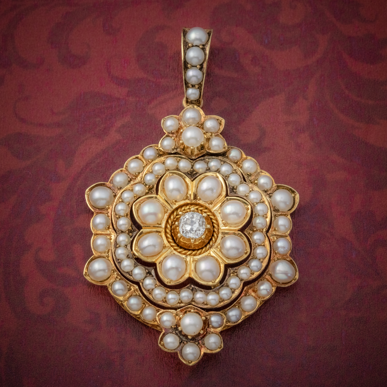 Antique Victorian Pearl Diamond Flower Pendant 18ct Gold C.1890