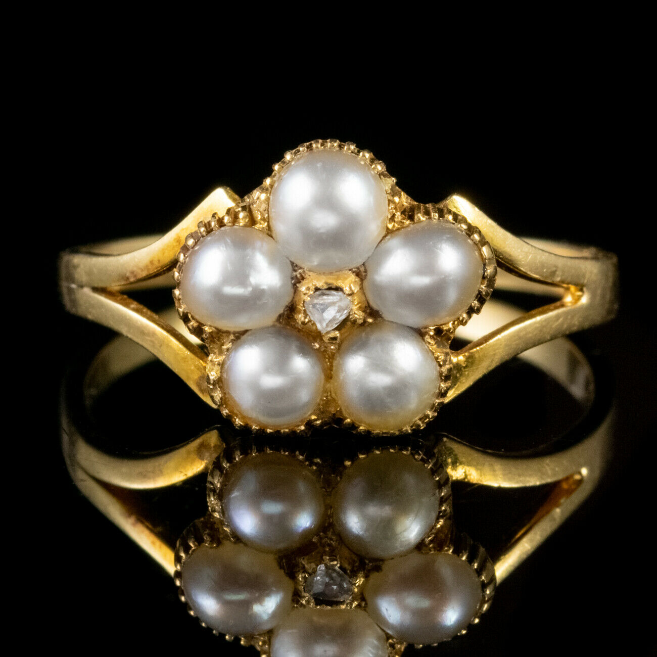 Antique Victorian Pearl Diamond Ring 18ct Gold Locket Back c.1880