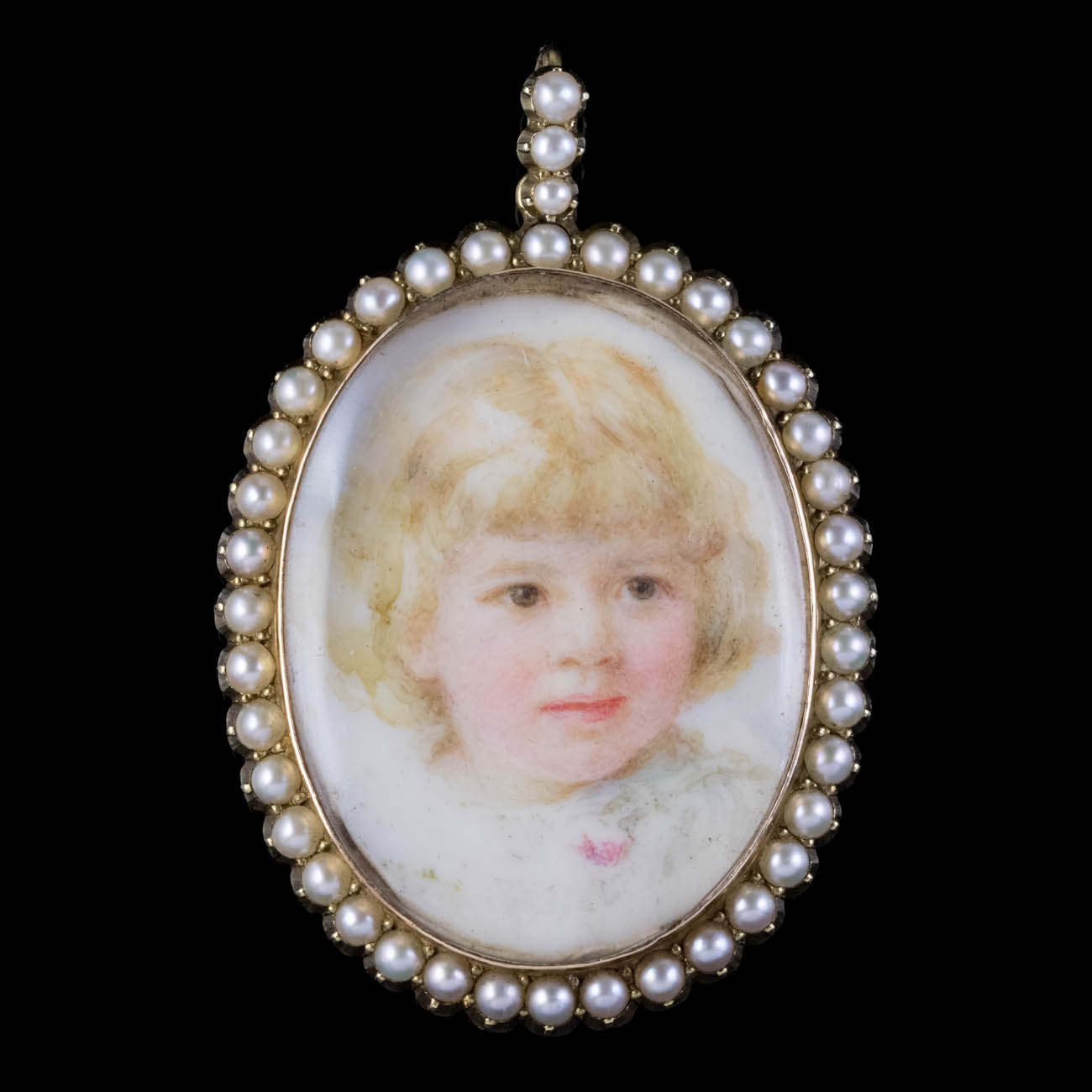 Antique Victorian Pearl Double Sided Portrait Locket 15ct Gold c.1870