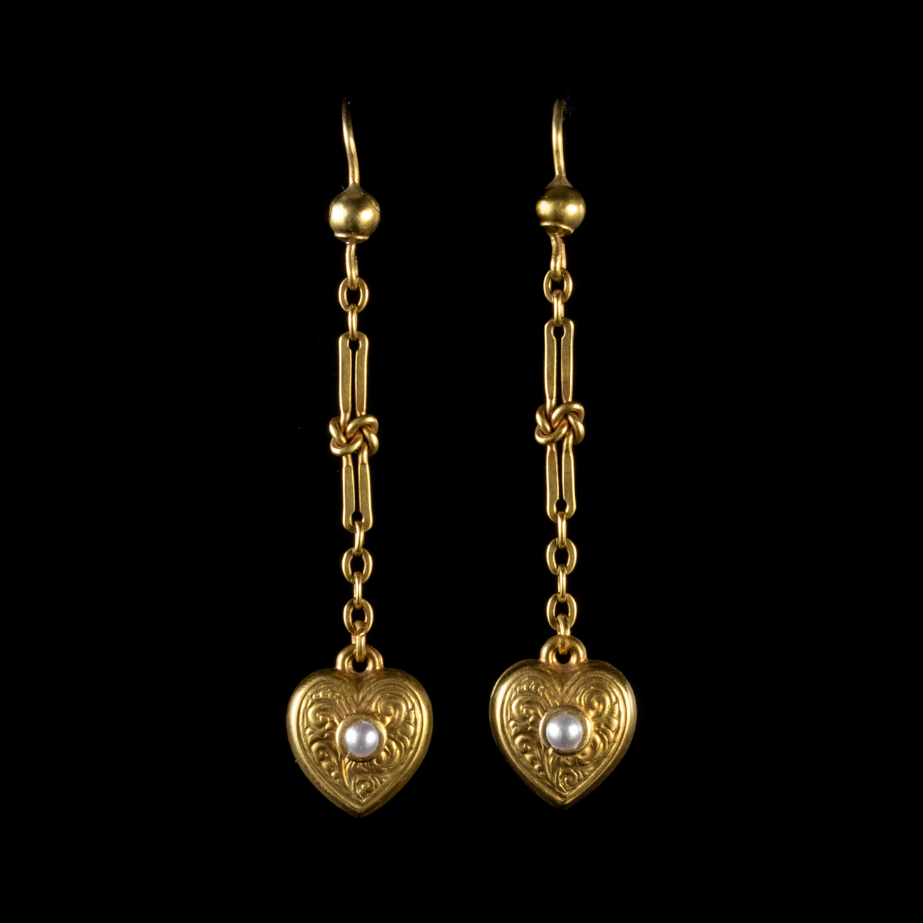 Antique Victorian Pearl Heart Drop Earrings 15ct Gold c.1900