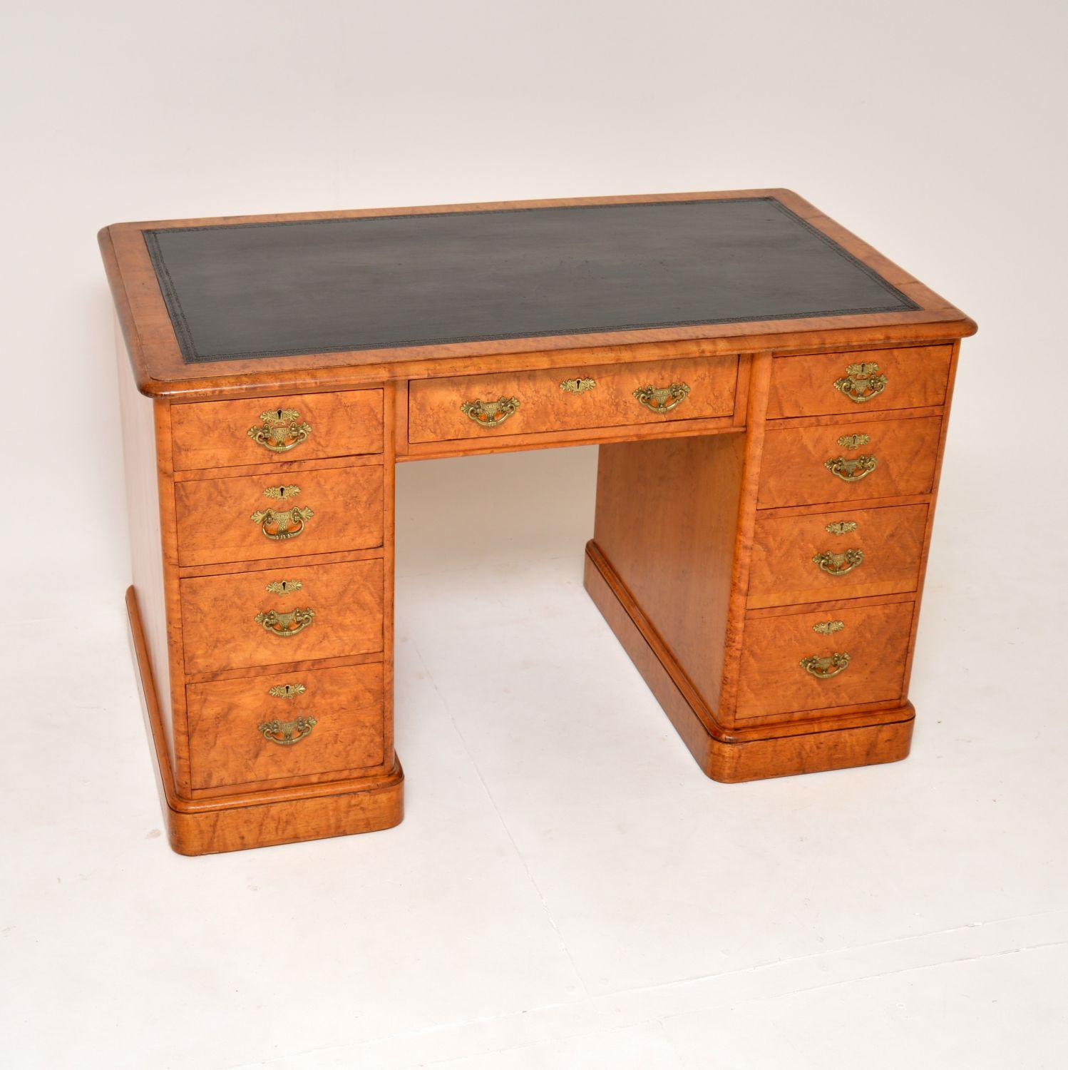 Antique Victorian Pedestal Desk in Maple Wood