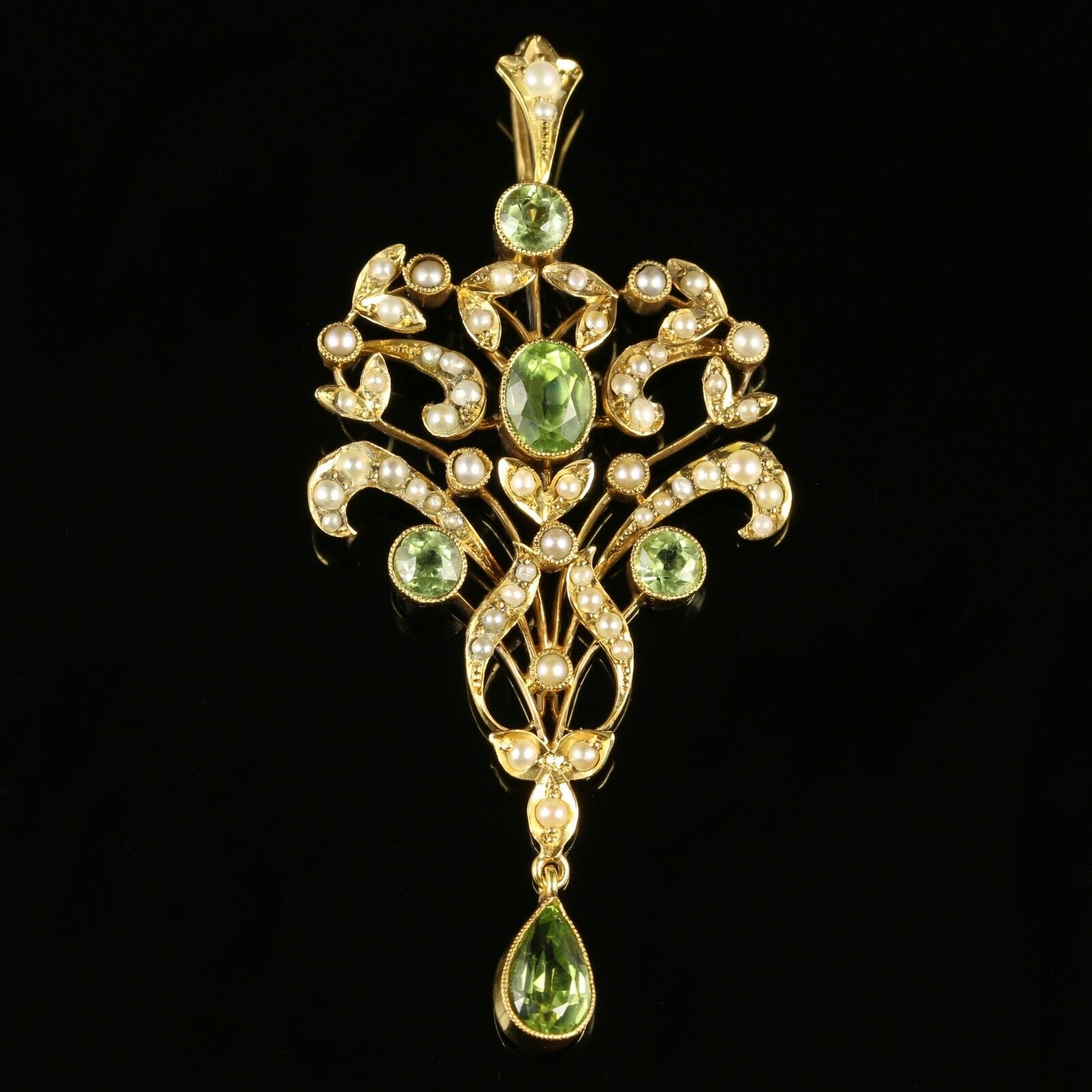Antique Victorian Peridot Pearl Pendant c.1880 15ct Gold