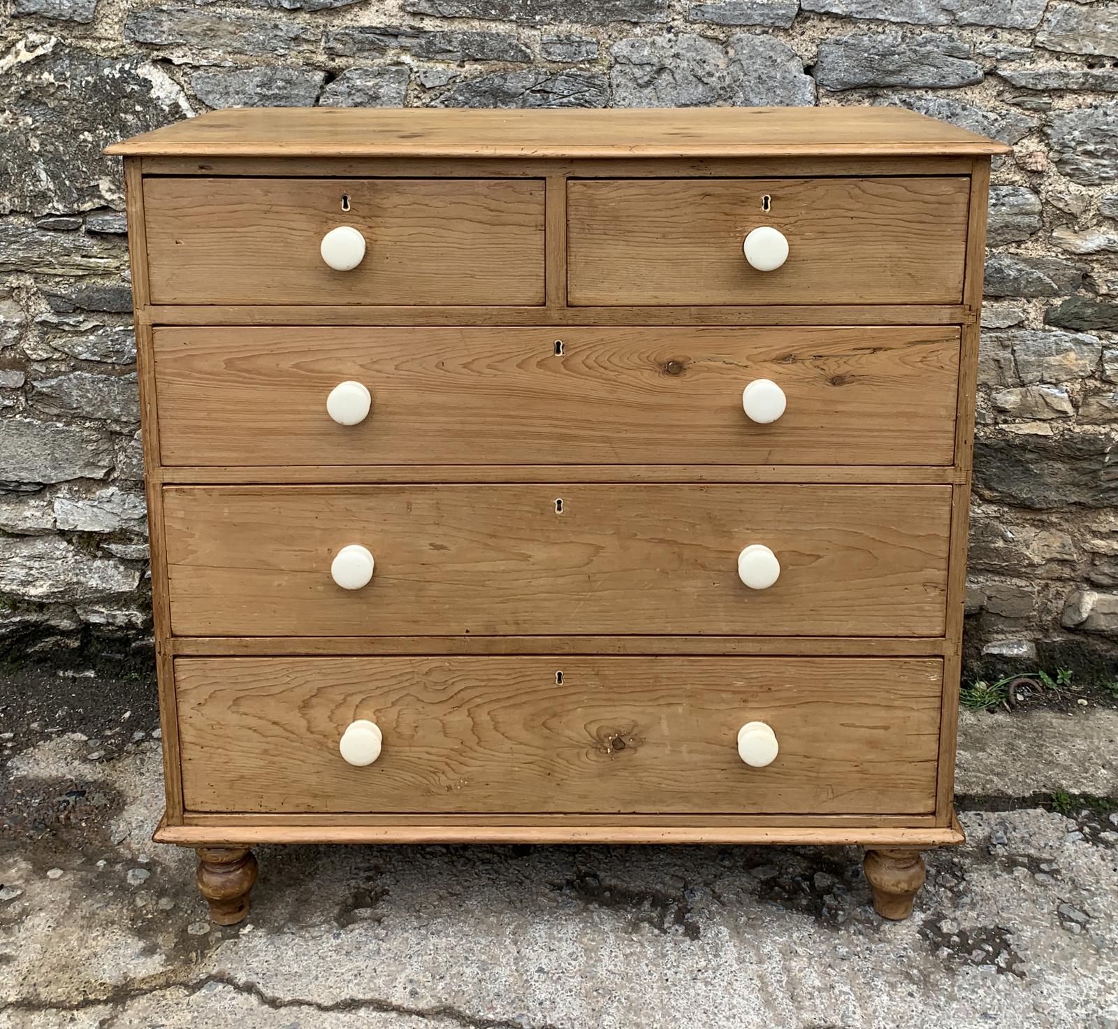 Antique Victorian Pine Chest of Drawers with Ceramic Knobs