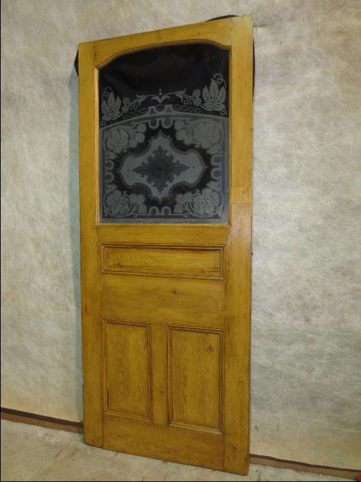 Antique Victorian Pine Etched Glass Door