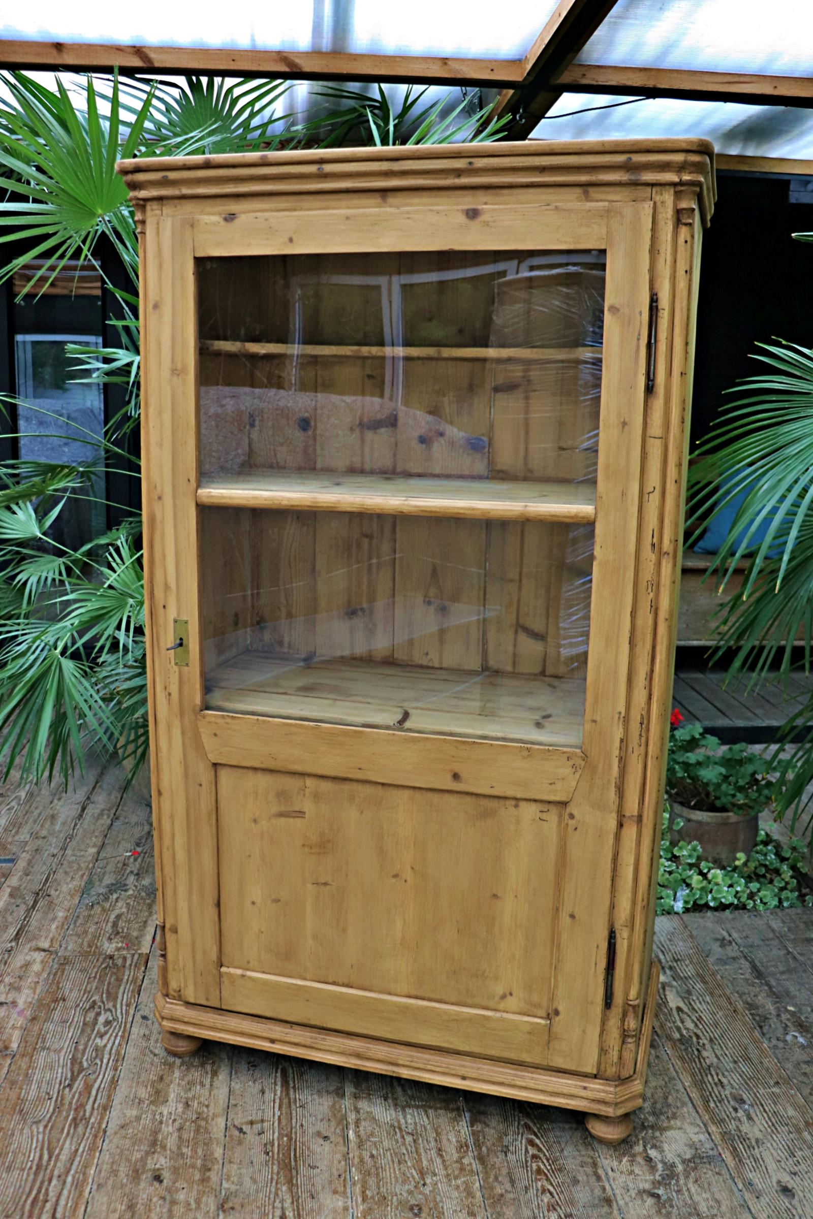 Antique Victorian Pine Glazed Display Cupboard / Cabinet