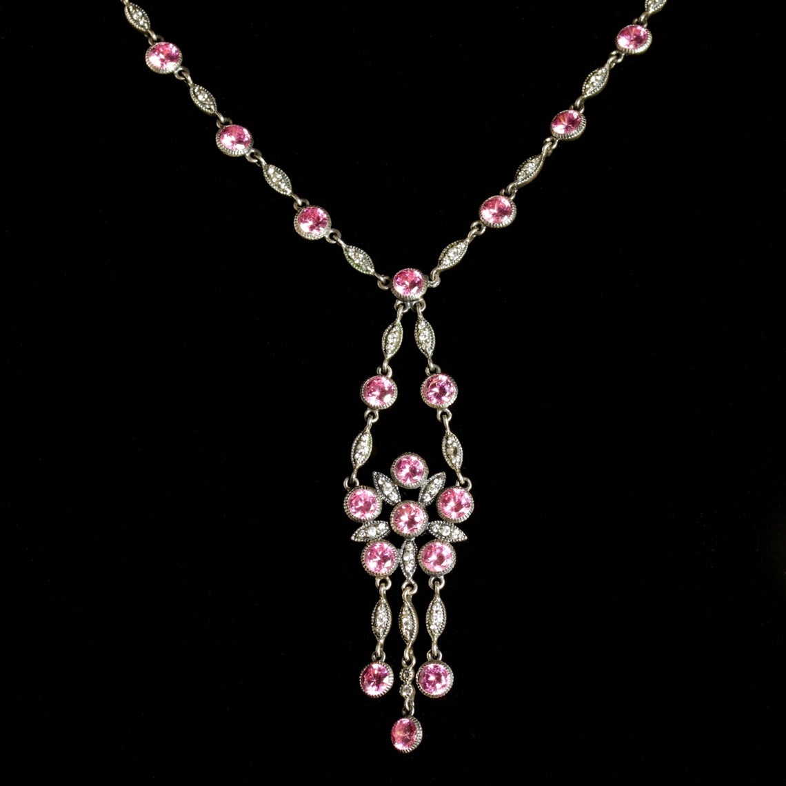 Antique Victorian Pink Paste Silver Necklace c.1900