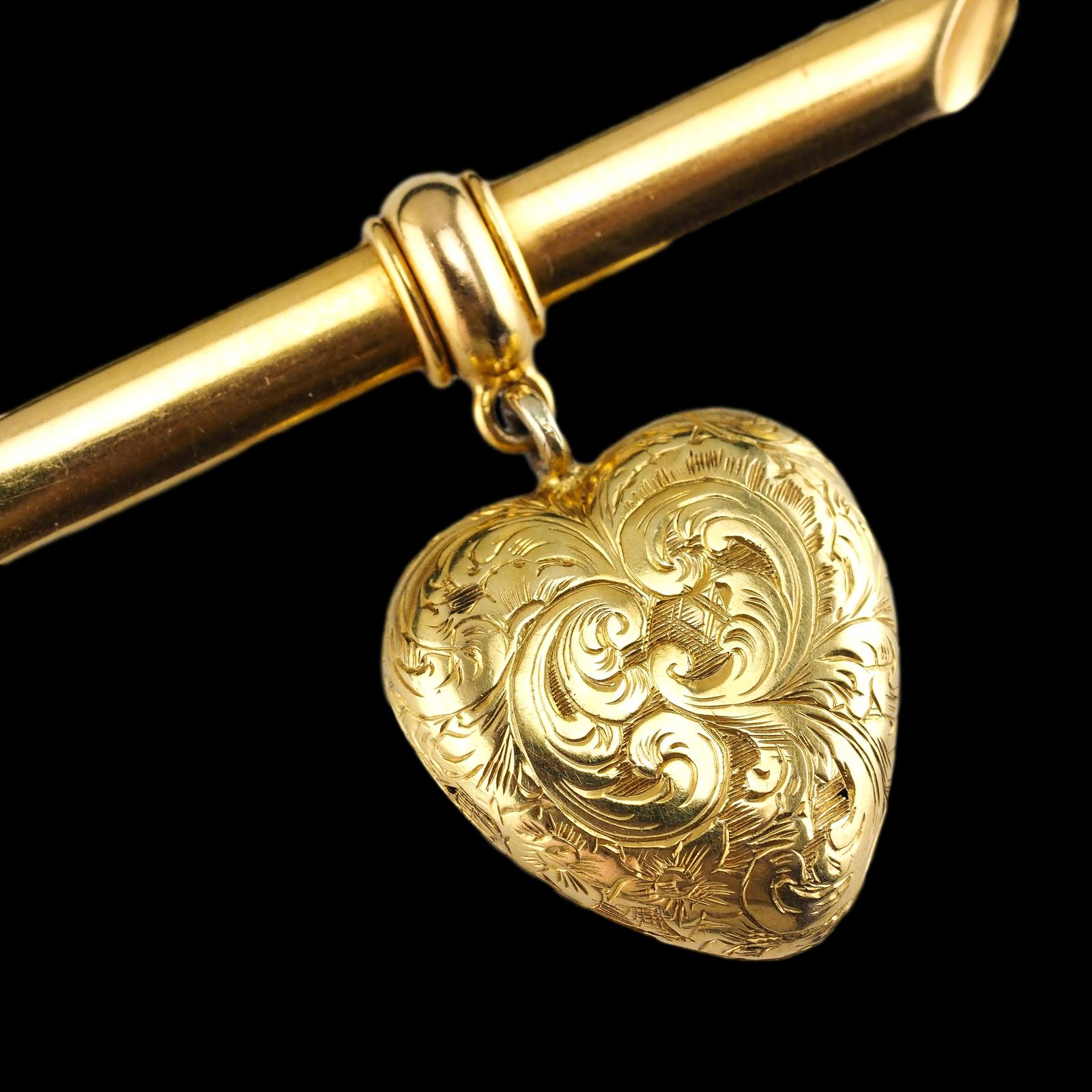 Antique Victorian 'puffy' Heart Brooch 18K Gold with Wonderful Engravings c.1890