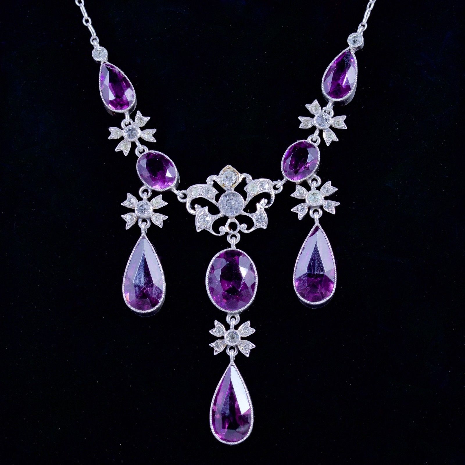 Antique Victorian Purple White Paste Stone Necklace Silver c.1900