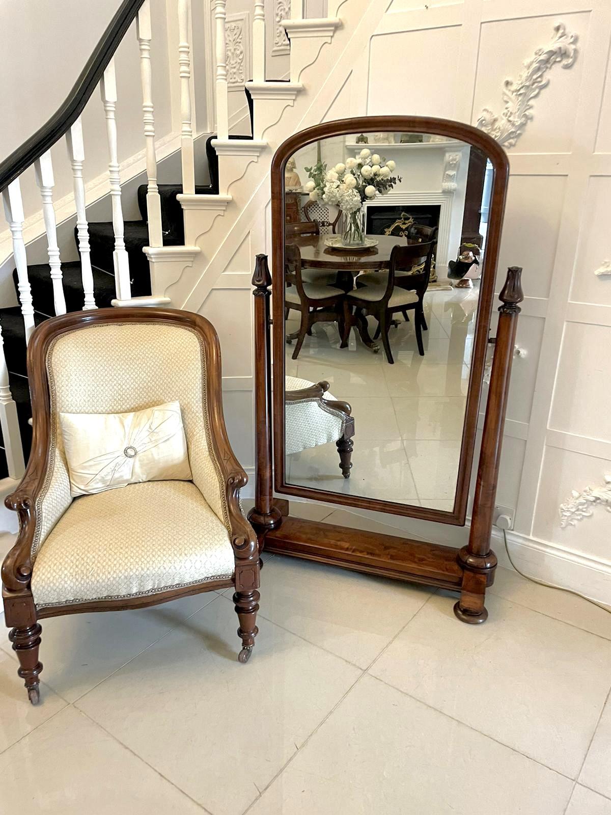 Antique Victorian Quality Figured Mahogany Free Standing Cheval Mirror (1 of 12)