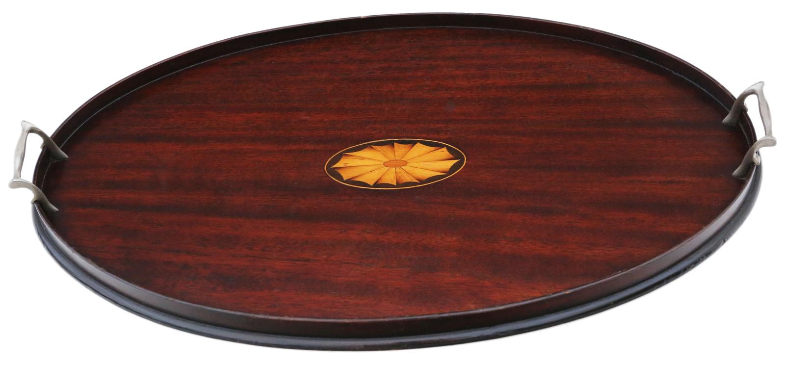 Antique Victorian Quality Inlaid Mahogany Oval Serving Tray Tea C1890 (1 of 4)